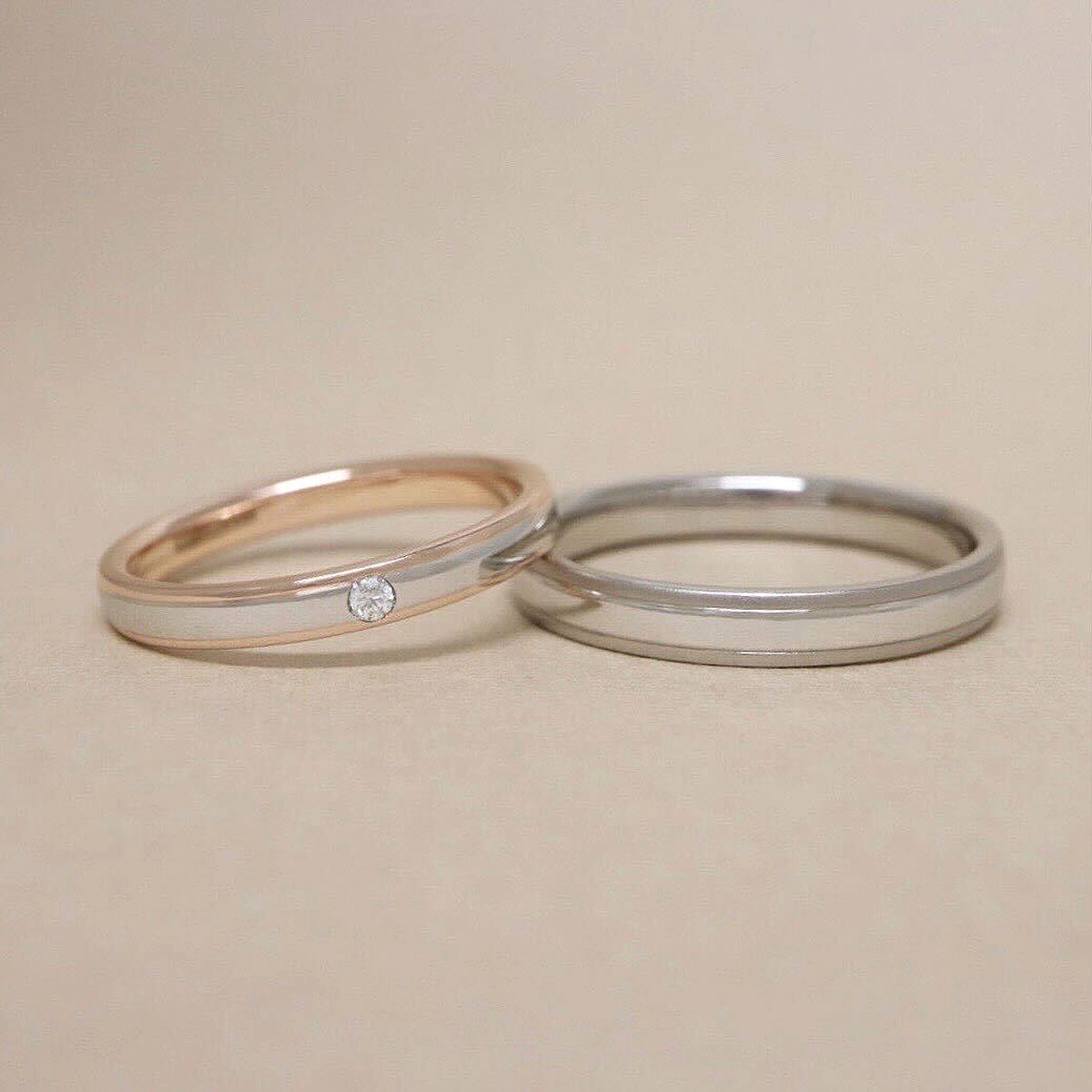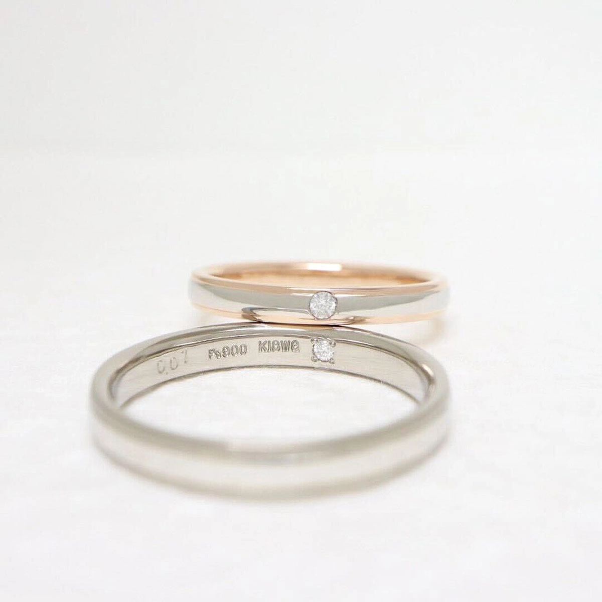 - 結婚指輪(上):ストレート、ワンメレ(ダイヤモンド1石)