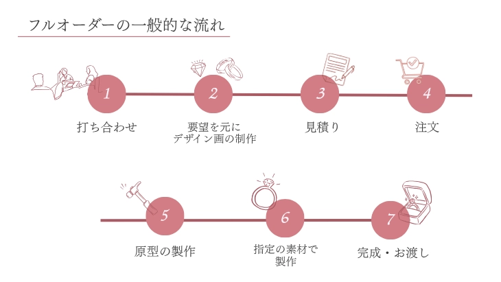 結婚指輪は既製品を選ぶのもひとつですが、フルオーダーやセミオーダーといった作り方も選べます。