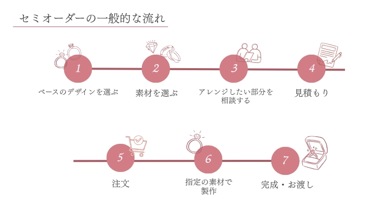 セミオーダーは、あらかじめ用意されたベースデザインを選び、そこに自分たちらしいアレンジを加えていくオーダー方法です。