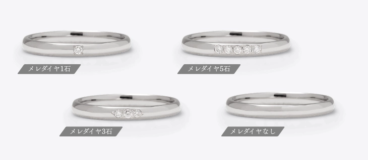 「デザインは好きだけど、もう少し華やかな結婚指輪がほしい」「もっとシンプルな方が使いやすいかも・・・」そんな風に思った時に工夫できるのがダイヤモンドの数を変更するという方法です。