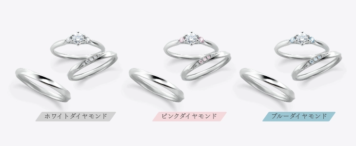 通常のダイヤモンドをカラーダイヤモンドに変更が可能です。人気のピンクダイヤモンドをはじめ、男性にも人気のブルーダイヤモンドや、元気をもらえるイエローダイヤモンド、シックなブラウンダイヤモンドなど、様々な種類を取り揃えています。