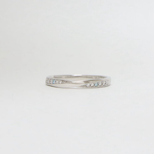 繊細なダイヤモンドのラインの美しさとクロスの立体的なデザインが印象的な結婚指輪。メレダイヤモンドは世界最高品質のグランバーガーダイヤモンドを使用し、美しい輝きを放ちます