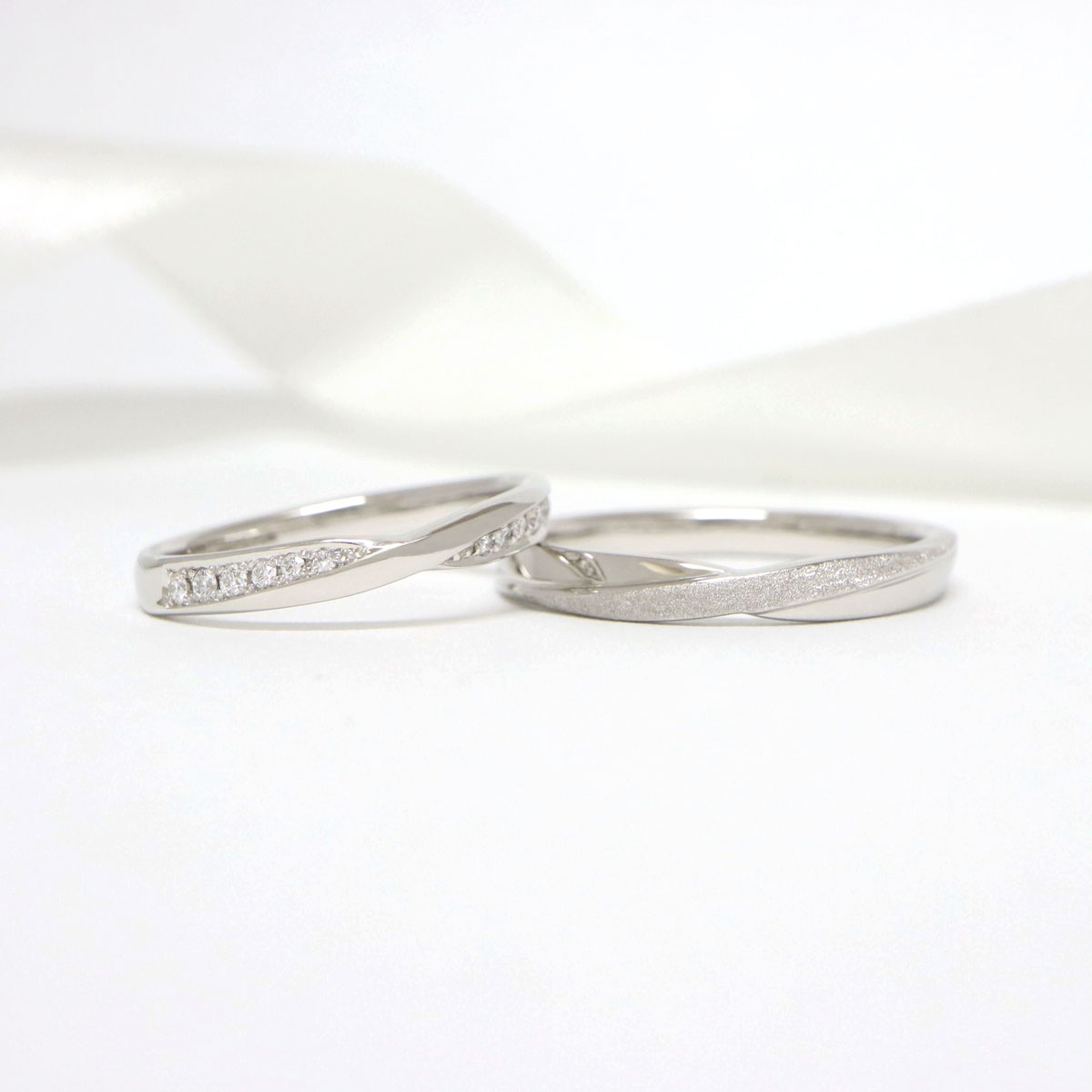 - 結婚指輪(上):ウェーブ、ラインメレ(ダイヤモンド華やか)