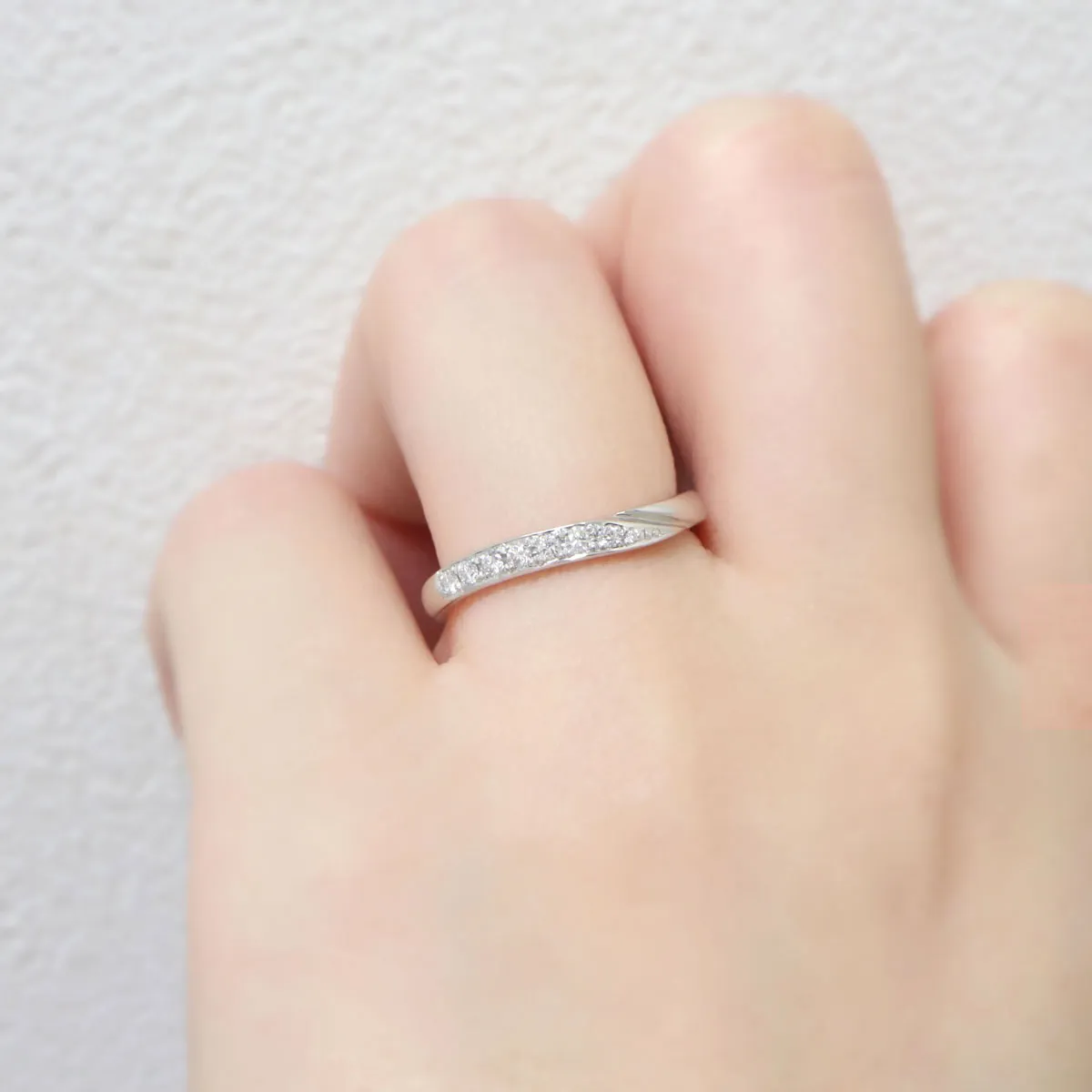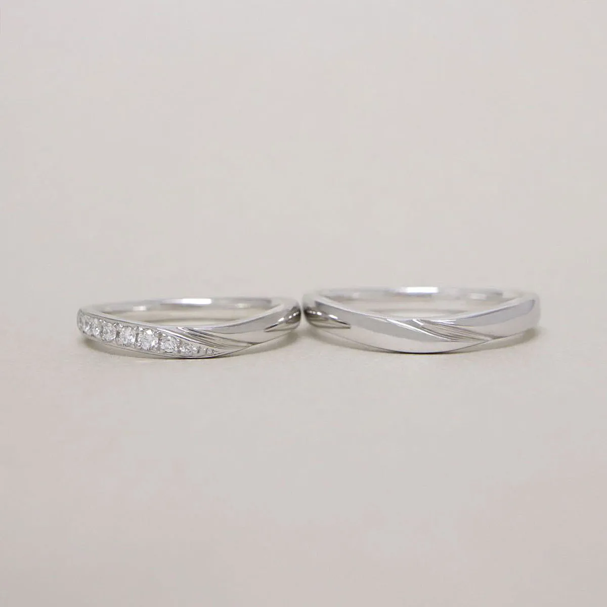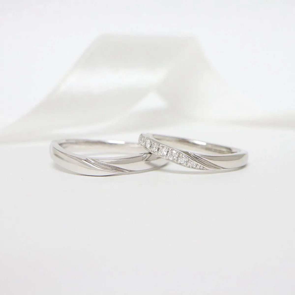 結婚指輪(上):ウェーブ、ラインメレ(ダイヤモンド華やか)