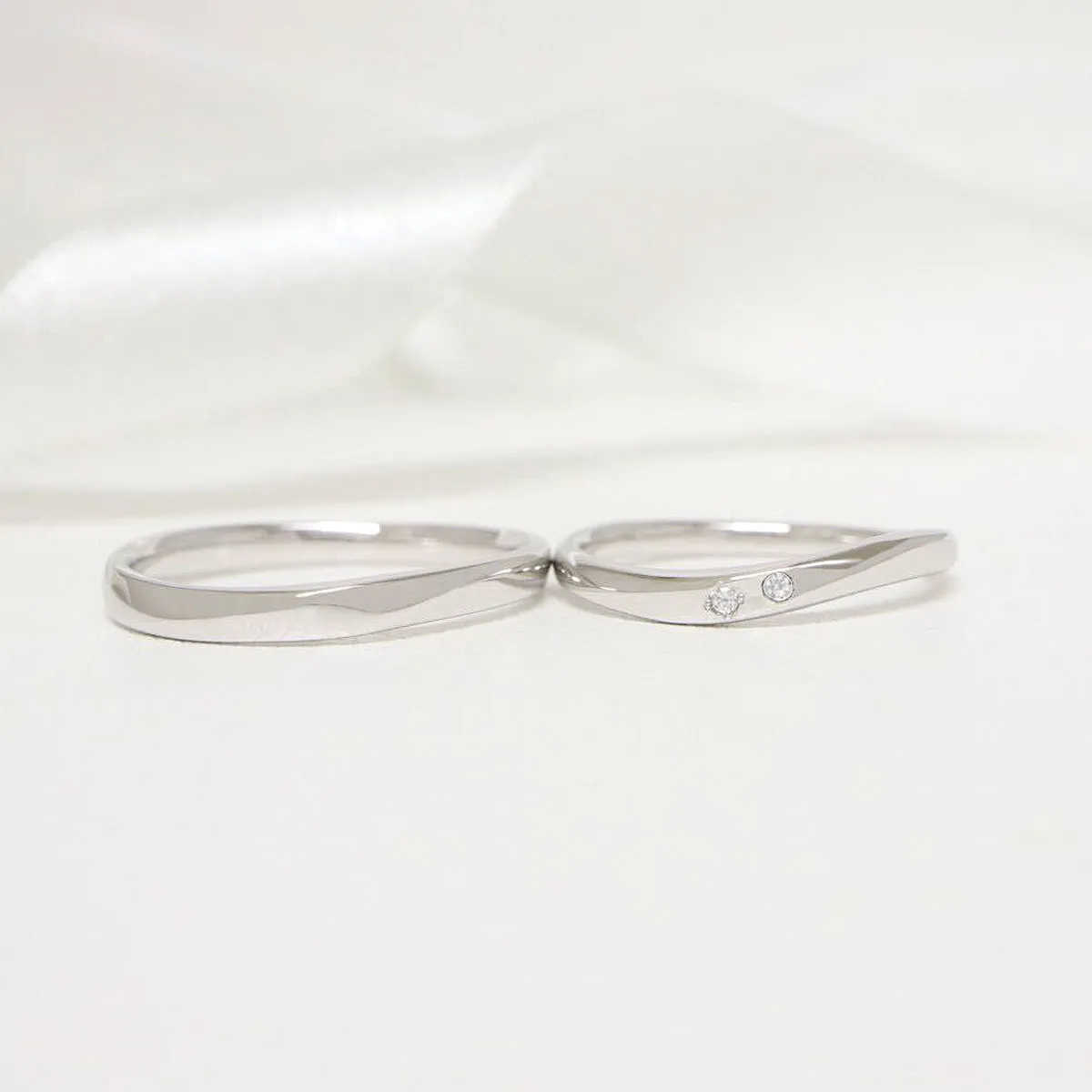 2石のダイヤモンドは永遠を誓い合ったふたりの象徴。滑らかな着け心地で日常にも馴染みやすく仕上げました。いつまでも愛されるようなデザインに。