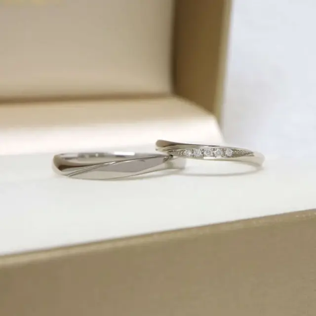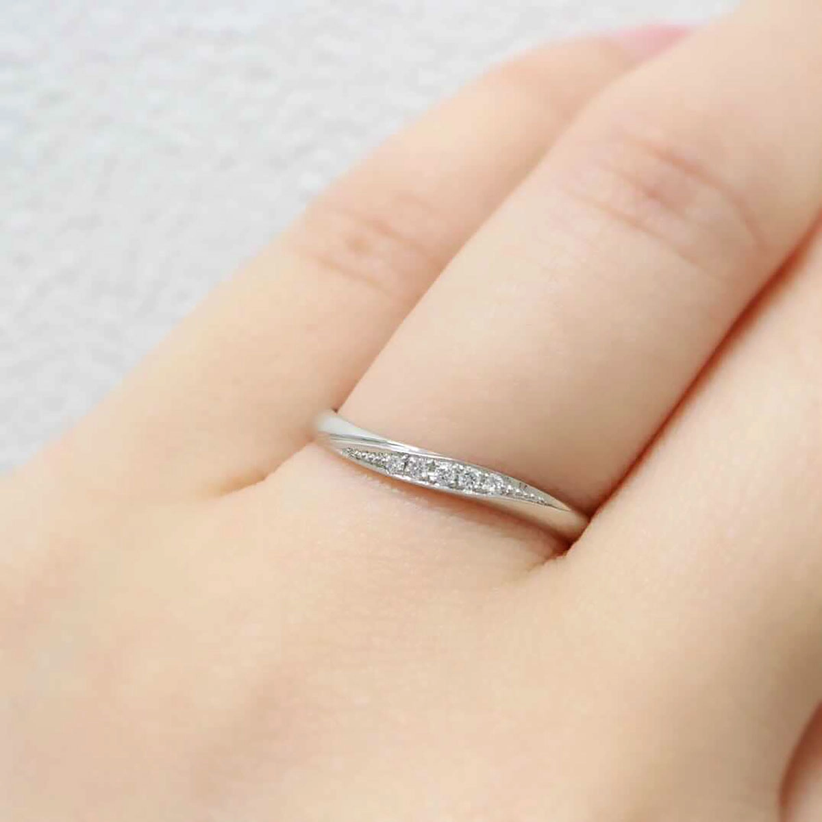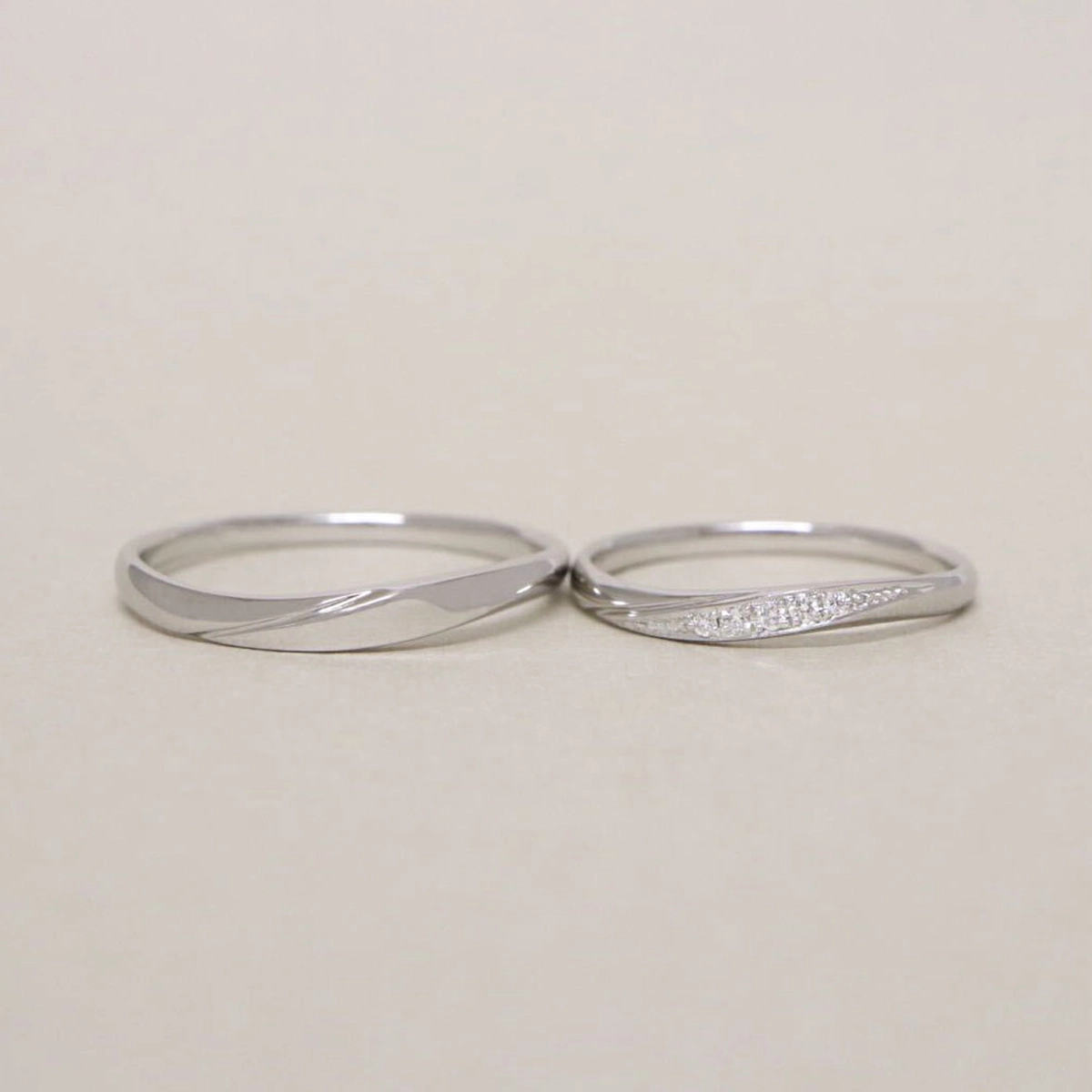 これからふたりで積み重ねていく日常が煌めく虹のように輝き、幸せでありますように。細身のウェーブラインで手元をすっきり美しく魅せます。