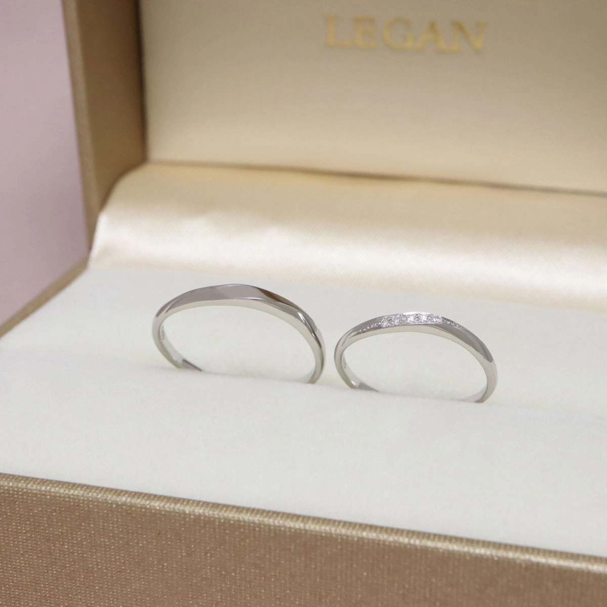 自由なアレンジができるLEGANの結婚指輪。LEGANは日本有数の老舗ブライダルジュエリー工房へ直接オーダーを行い、高品質なブライダルリングを適正価格でご提供しています。デザインは数百を超える豊富なラインナップをご用意し、コンシェルジュと相談をしながら高い技術を有するアトリエだからこそ実現できる様々なアレンジで、おふたりの理想のリングをご提供しております。