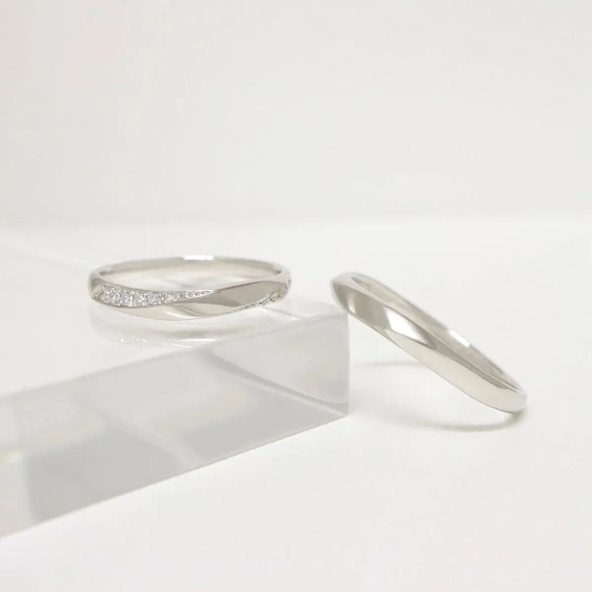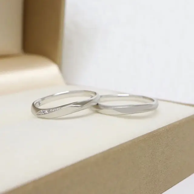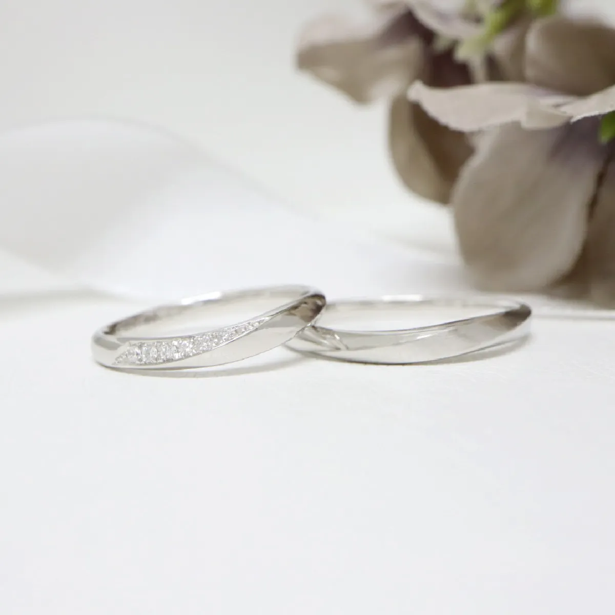 - 結婚指輪(上):ウェーブ、V字、ラインメレ(ダイヤモンド華やか)
