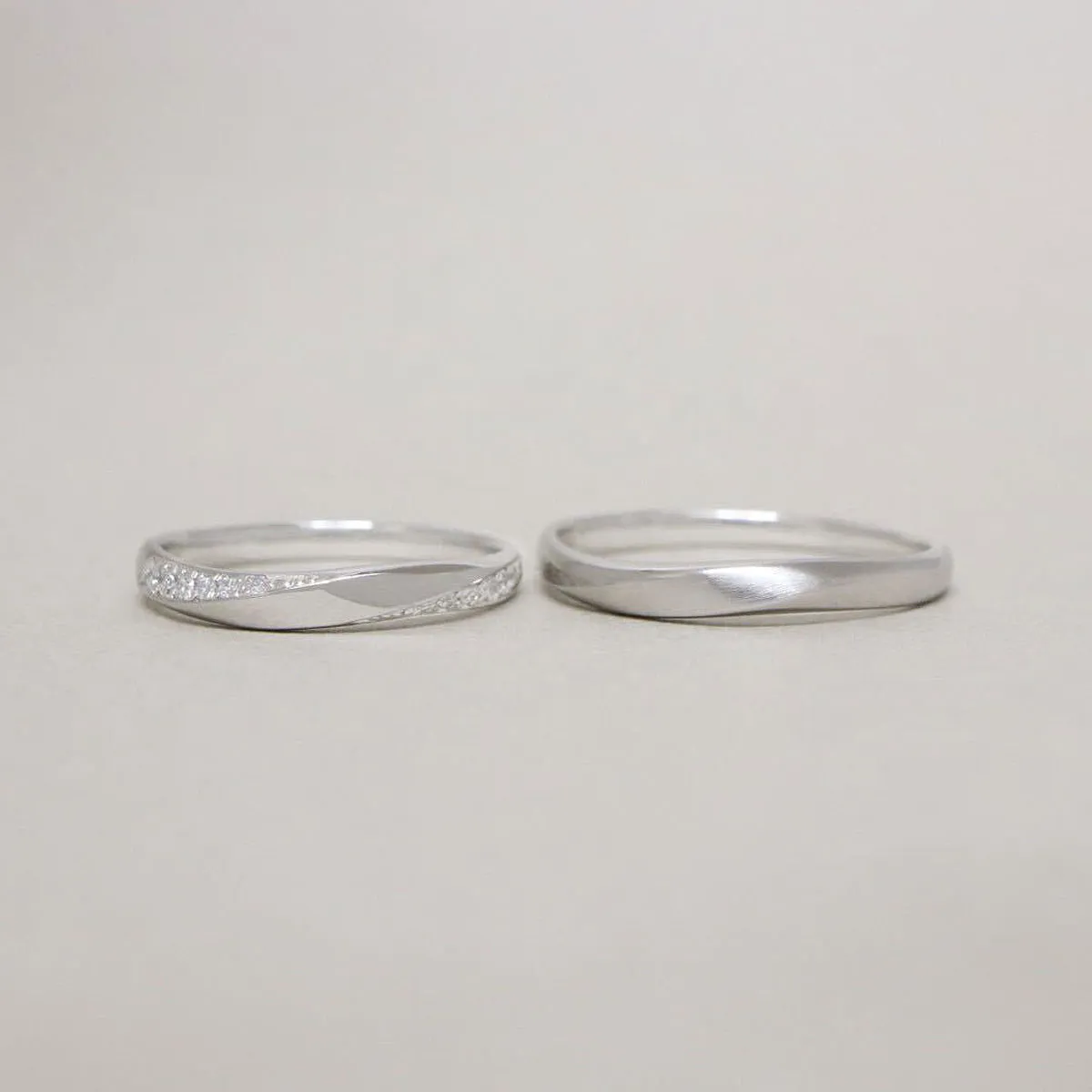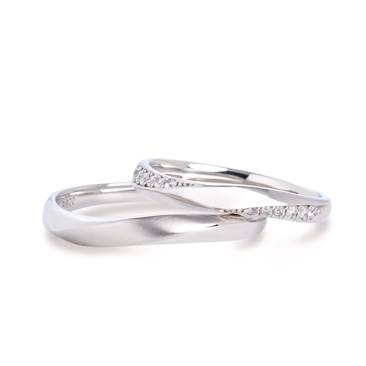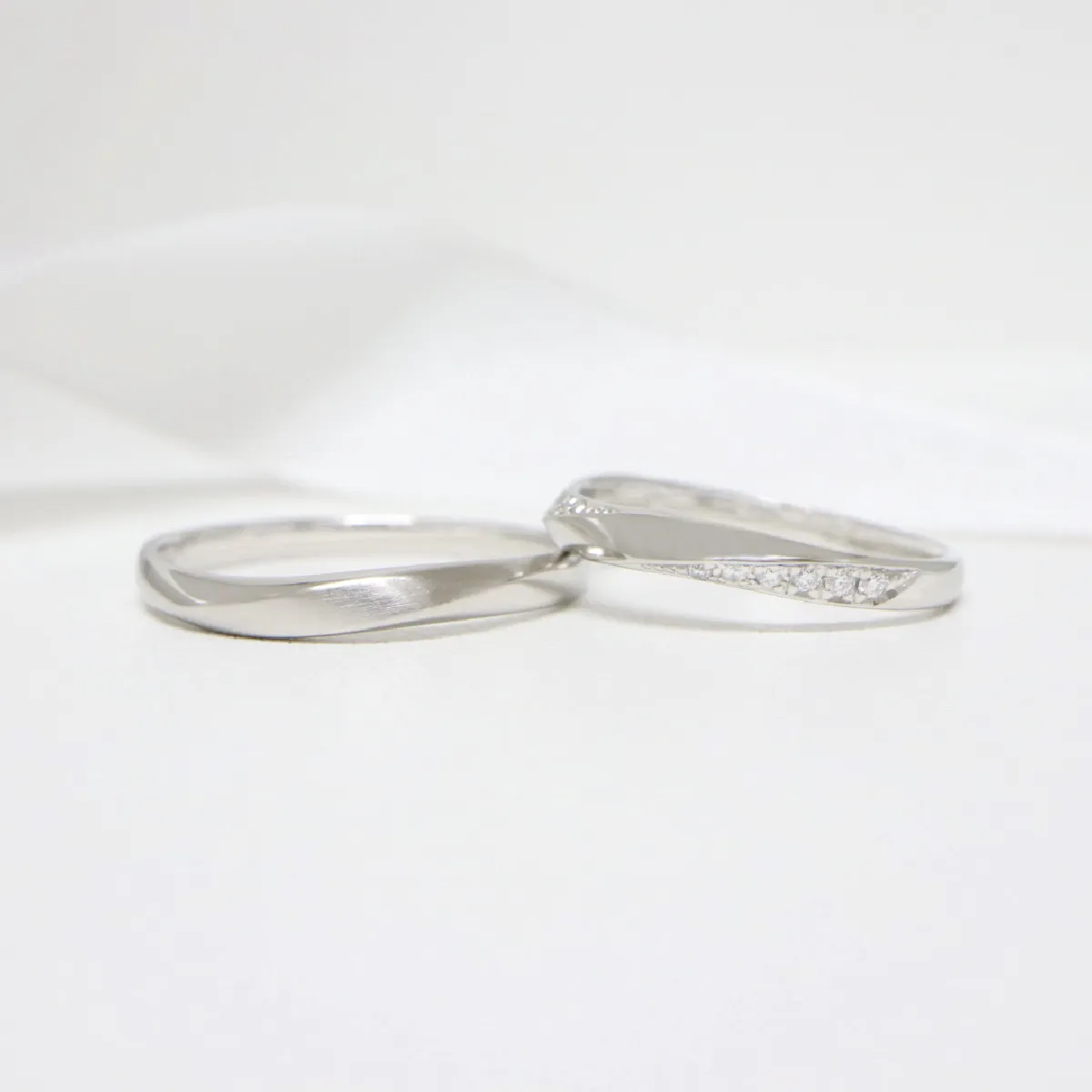- 結婚指輪(上):ウェーブ、V字、ラインメレ(ダイヤモンド華やか)