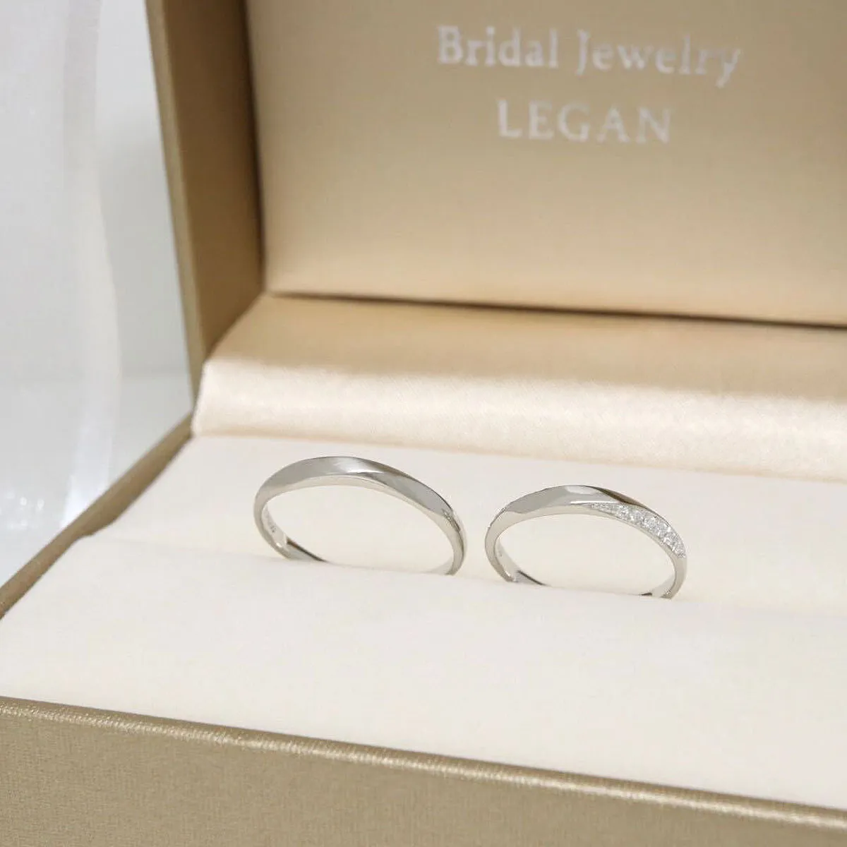 自由なアレンジができるLEGANの結婚指輪。LEGANは日本有数の老舗ブライダルジュエリー工房へ直接オーダーを行い、高品質なブライダルリングを適正価格でご提供しています。デザインは数百を超える豊富なラインナップをご用意し、コンシェルジュと相談をしながら高い技術を有するアトリエだからこそ実現できる様々なアレンジで、おふたりの理想のリングをご提供しております。