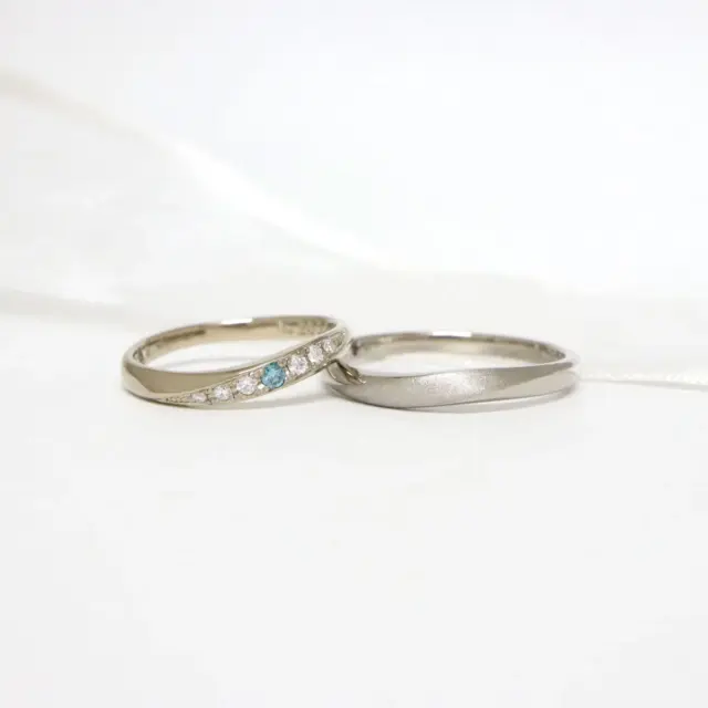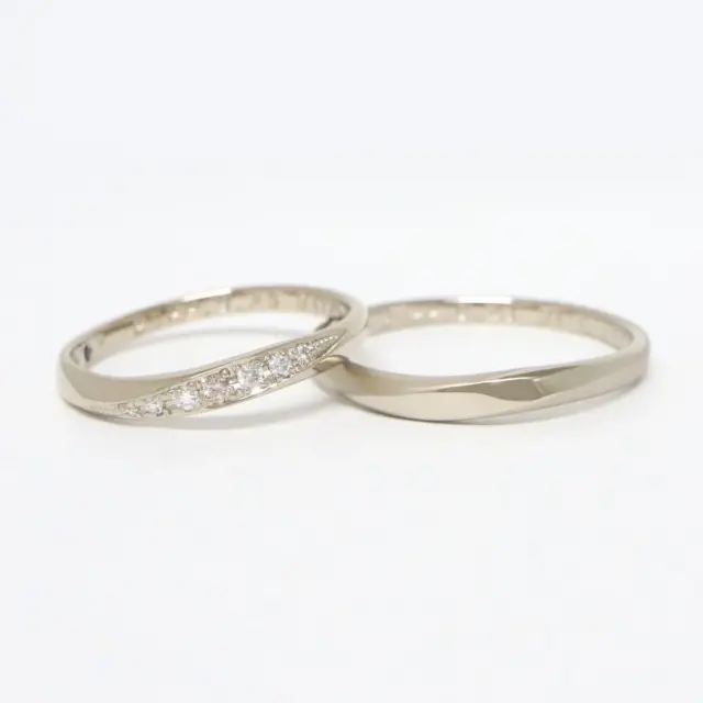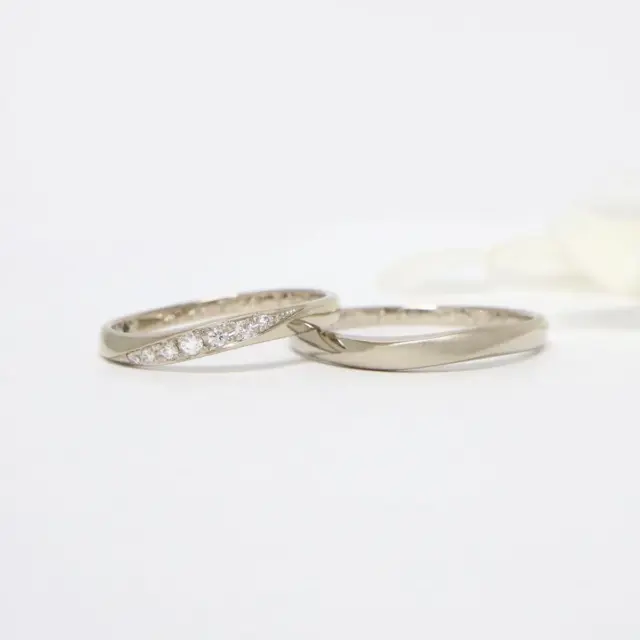 - 結婚指輪(上):ウェーブ、ラインメレ(ダイヤモンド華やか)