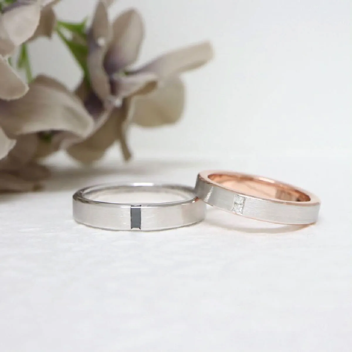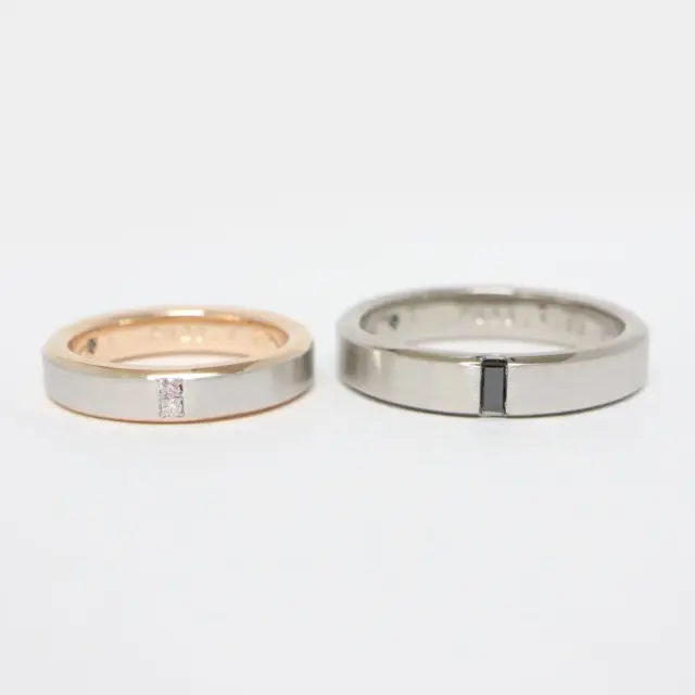 結婚指輪(下):0.02ct プラチナ&ブラックゴールド