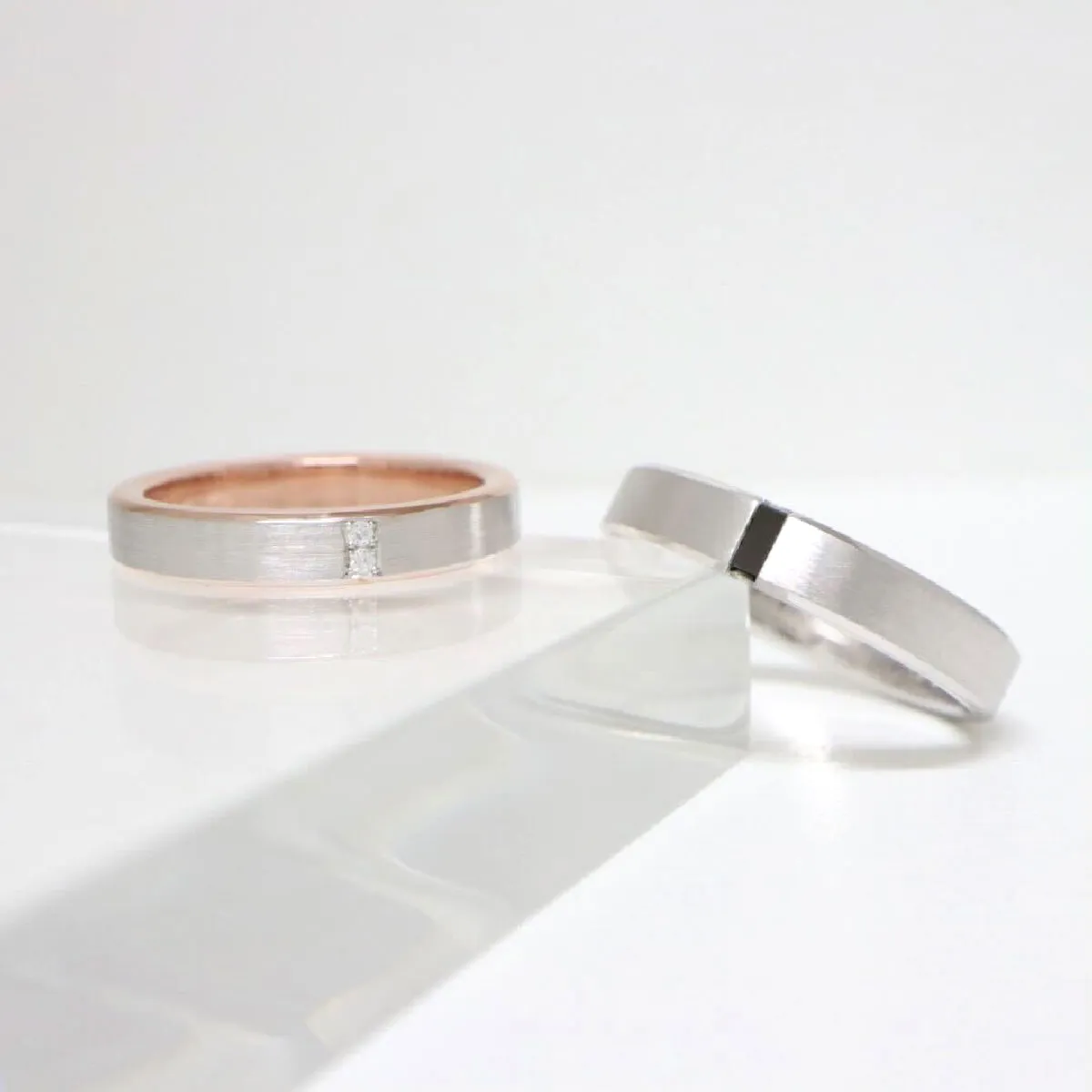 結婚指輪(上):0.02ct プラチナ&ピンクゴールド