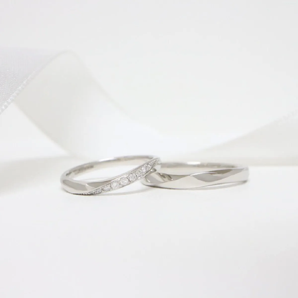 結婚指輪(上):ウェーブ、ラインメレ(ダイヤモンド華やか)