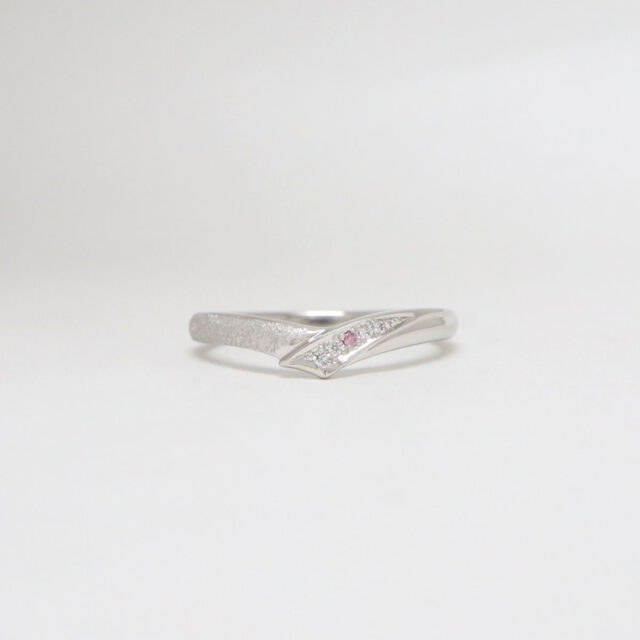 V字のラインが指を長く、美しく見せてくれるマリッジリング。白鳥が羽を重ね合わせているようなイメージのデザインです。