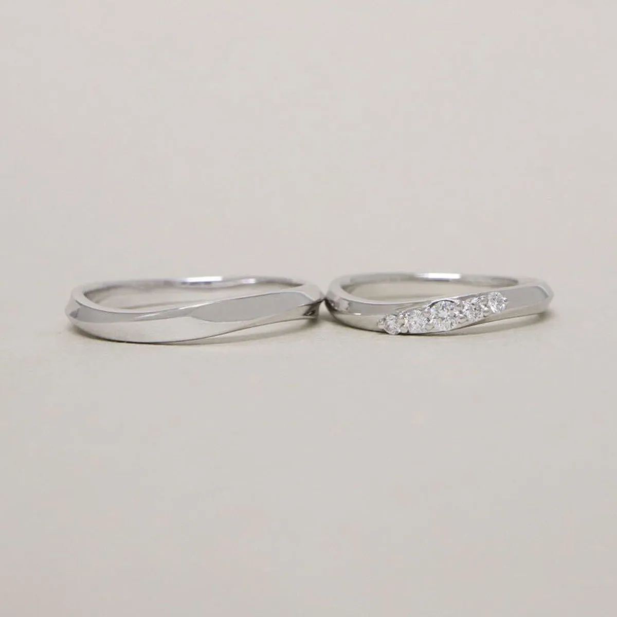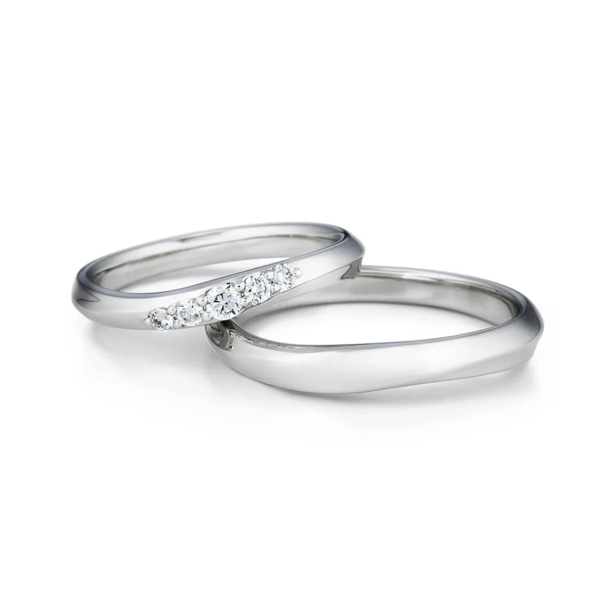 結婚指輪(上):ウェーブ、セベラルメレ(ダイヤモンド5石)