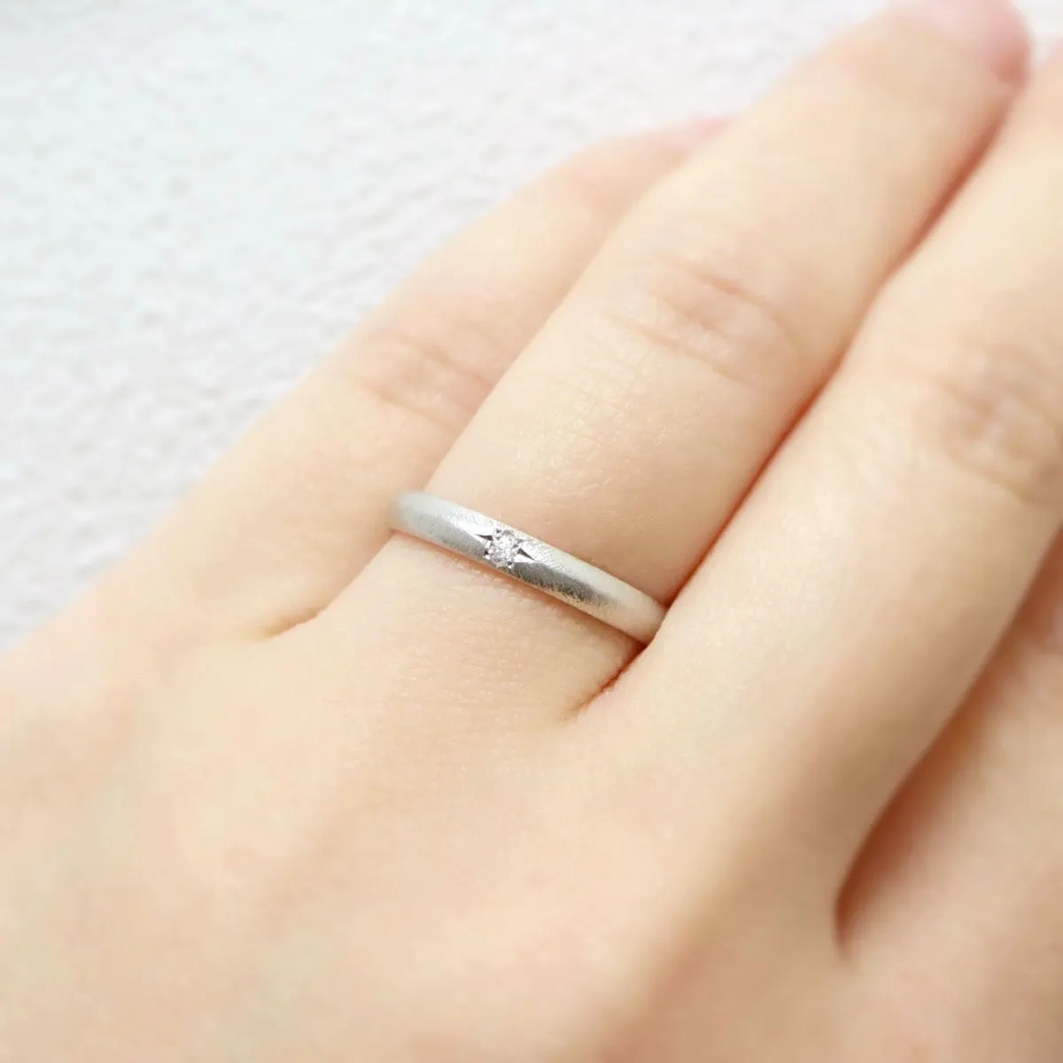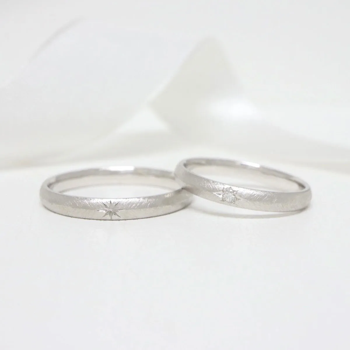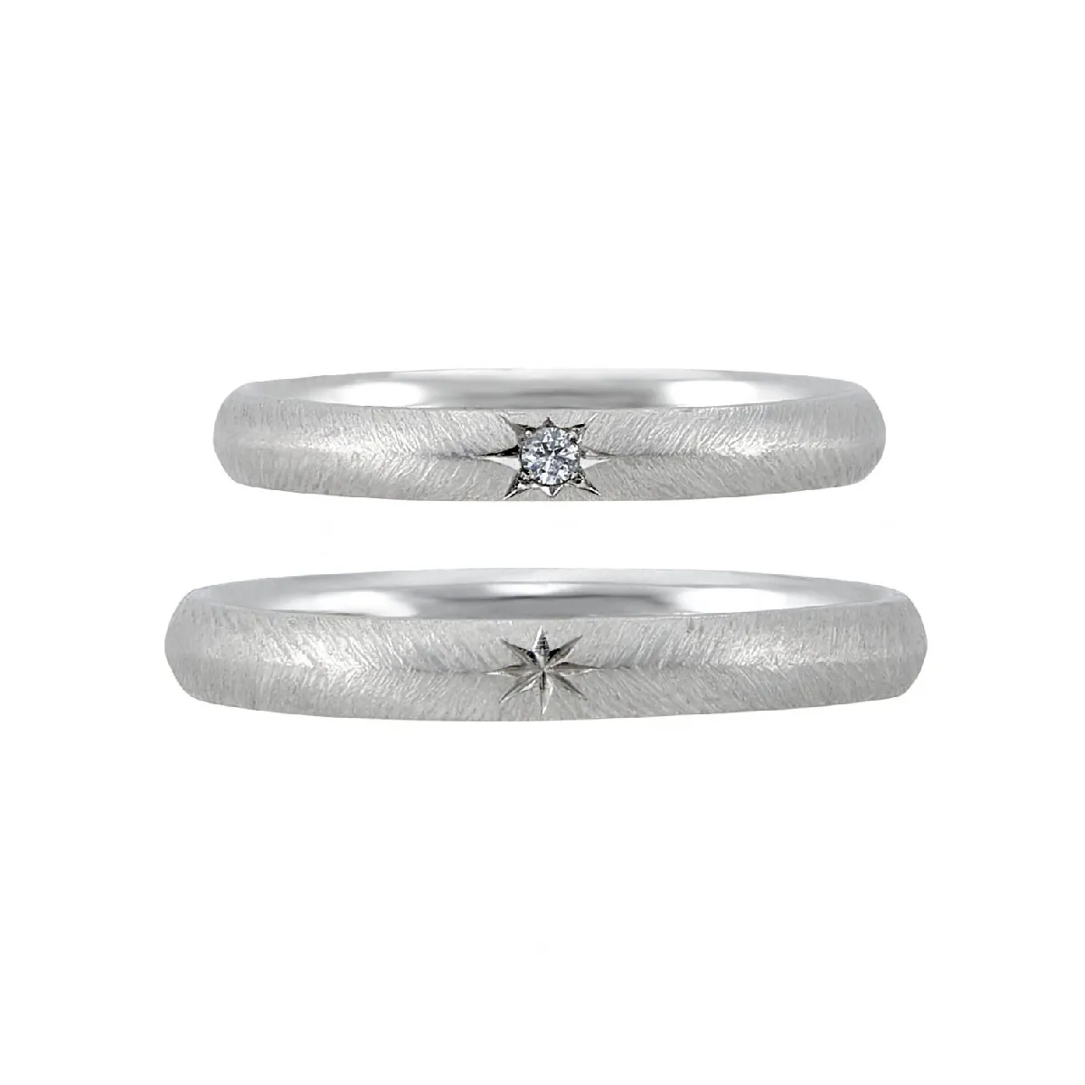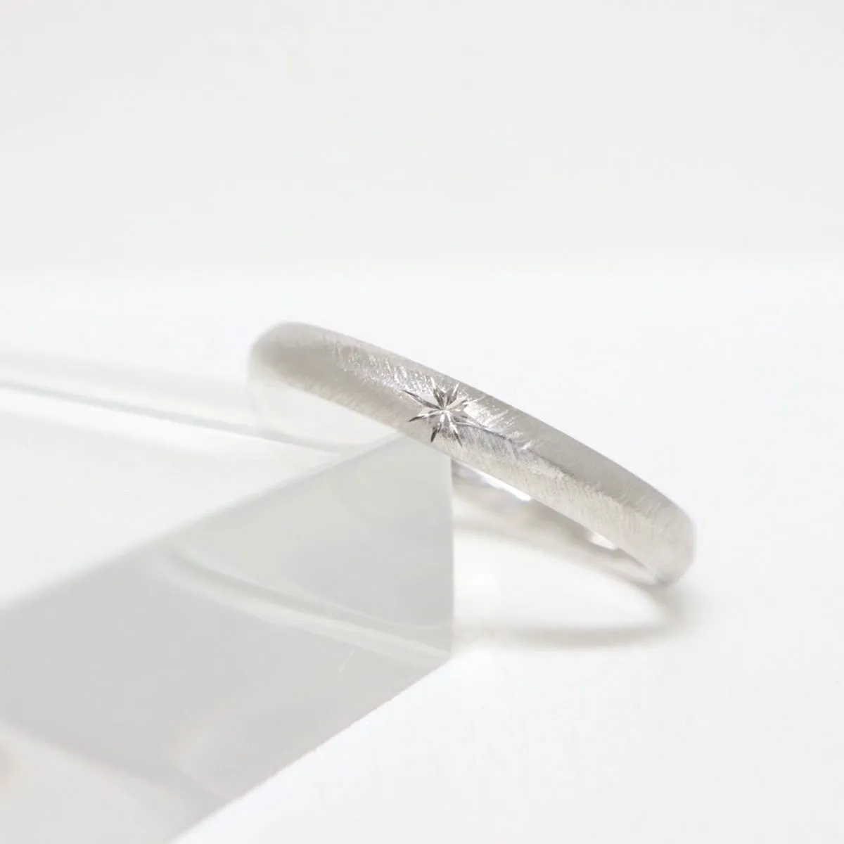 羽毛のような柔和なテクスチャーが特徴のマリッジリング。名前の通り、星をイメージした彫り模様がポイントになっています。 メレダイヤモンドは世界最高品質のグランバーガーダイヤモンドを使用、美しい輝きを放ちます。