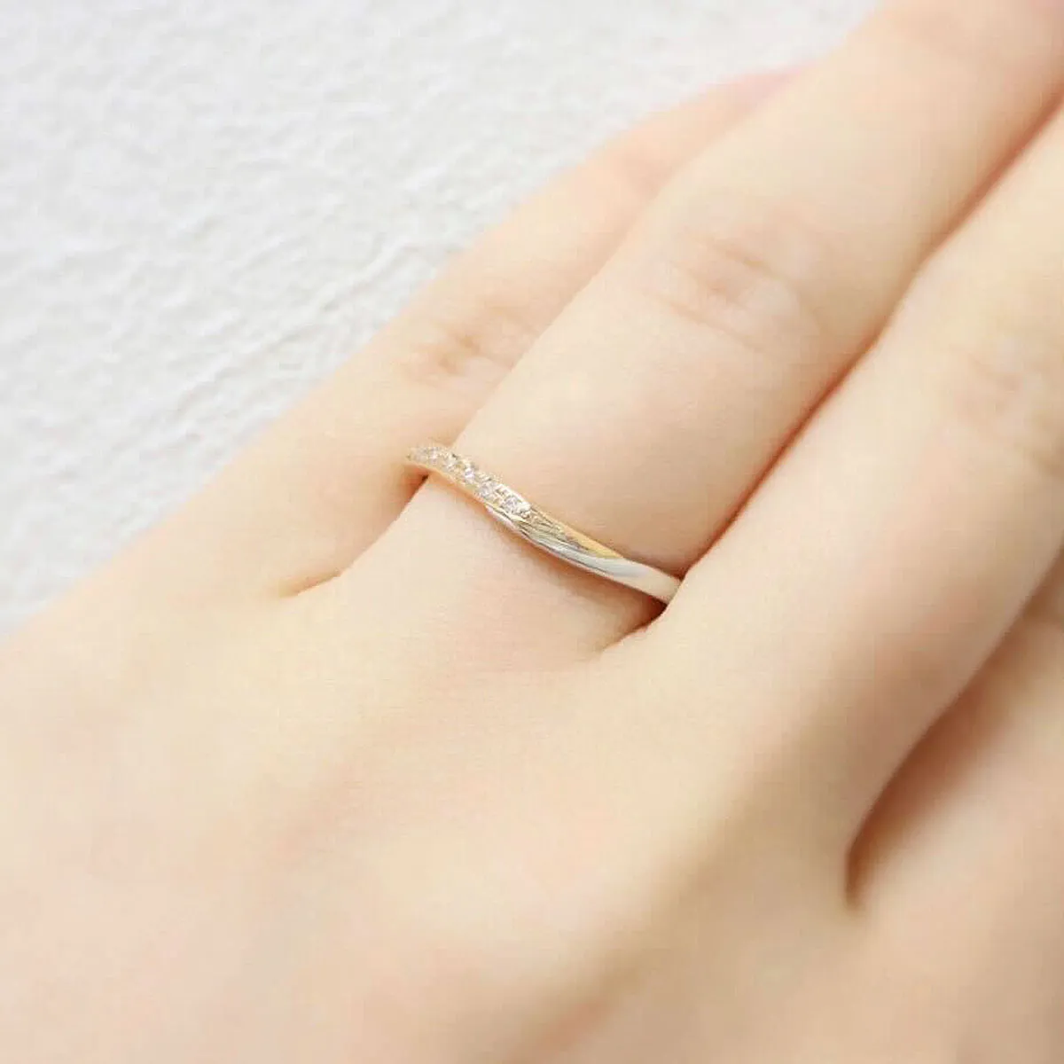 結婚指輪(上):ウェーブ、ラインメレ(ダイヤモンド華やか)