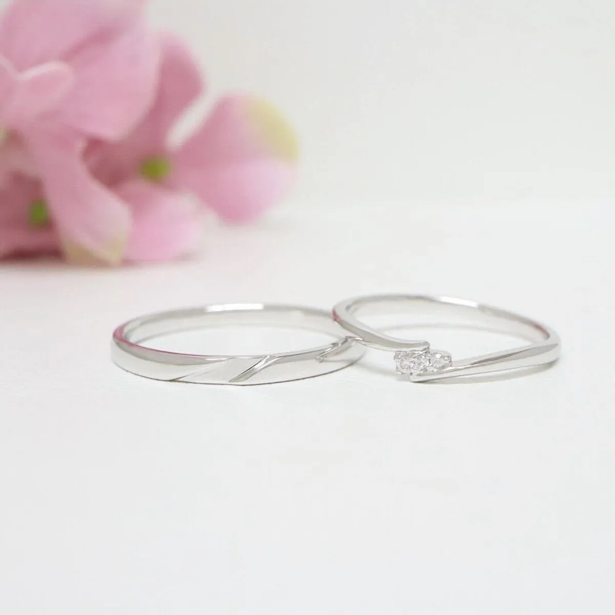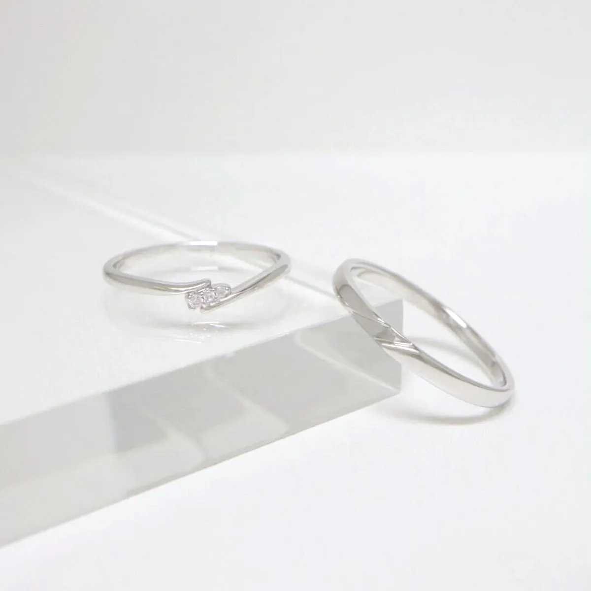 向かい合ったアームのフォルムはいつまでも変わらないふたりの気持ちを表現しています。繊細に留められたダイヤモンドはより輝きやすいよう留め方にもこだわりました。
