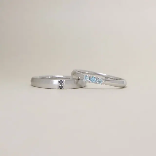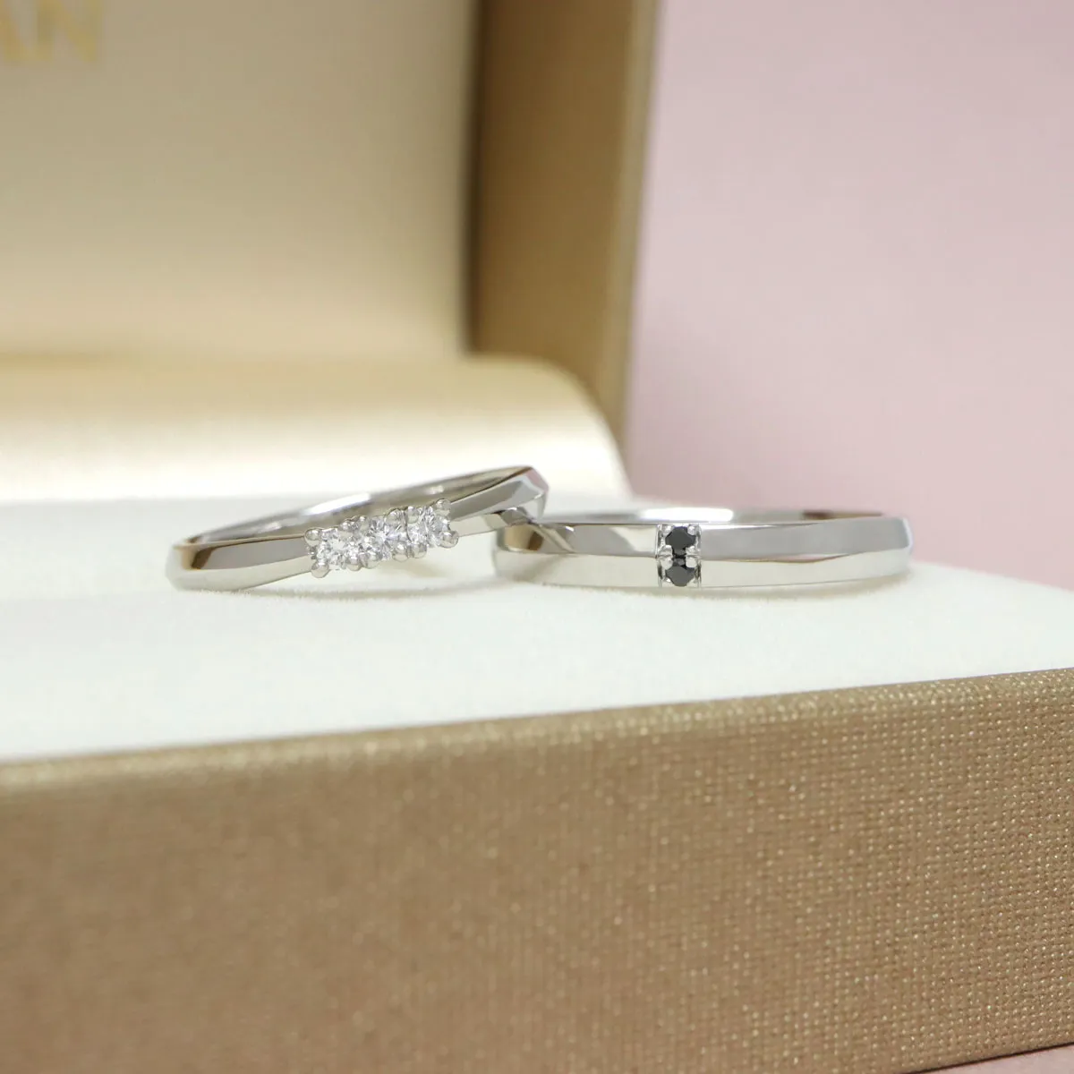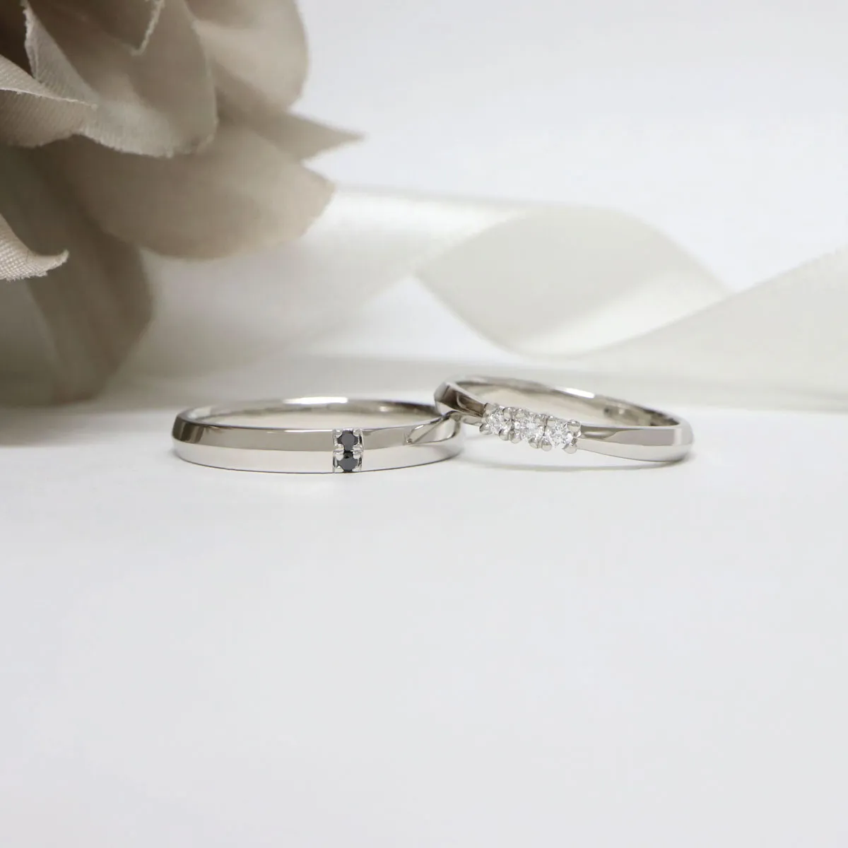 結婚指輪(下):ストレート、セベラルメレ(ブラックダイヤモンド2石)