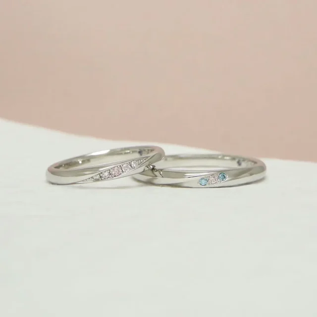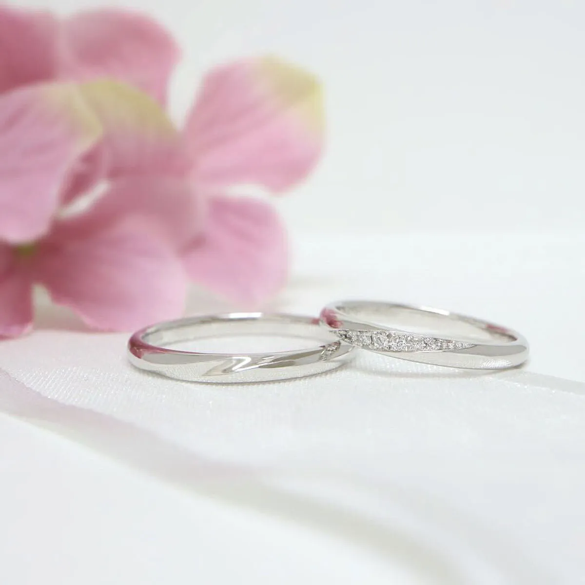- 結婚指輪(上):ストレート、ラインメレ(ダイヤモンド華やか)