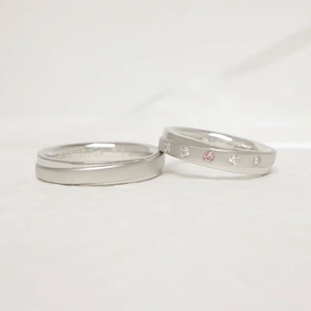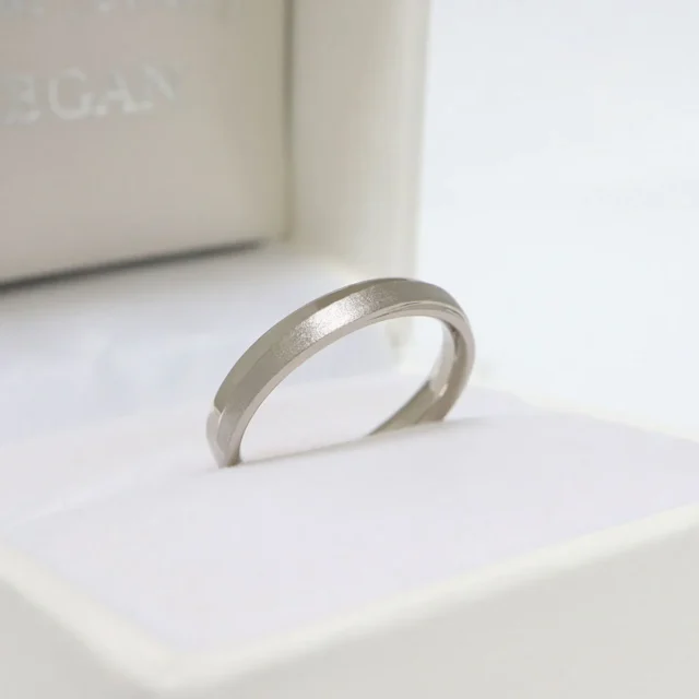 存在感のあるリング幅が目を惹くデザイン。ラインの部分にはつや消しのマット仕上げを施し、プラチナの質感にコントラストをつけました。