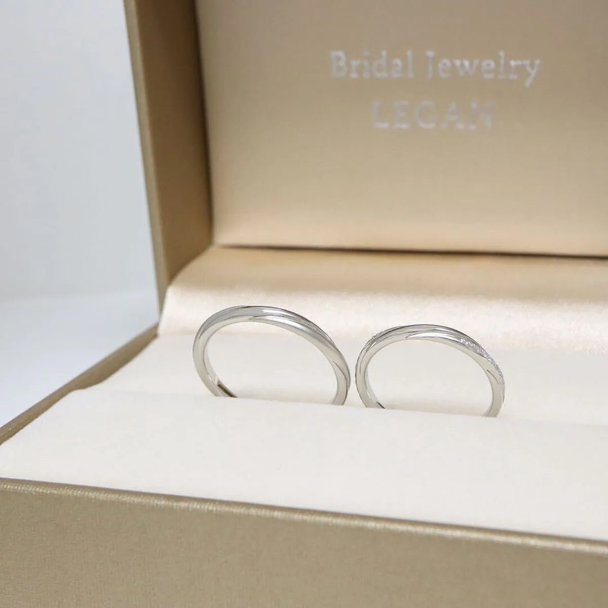 自由なアレンジができるLEGANの結婚指輪。LEGANは日本有数の老舗ブライダルジュエリー工房へ直接オーダーを行い、高品質なブライダルリングを適正価格でご提供しています。デザインは数百を超える豊富なラインナップをご用意し、コンシェルジュと相談をしながら高い技術を有するアトリエだからこそ実現できる様々なアレンジで、おふたりの理想のリングをご提供しております。