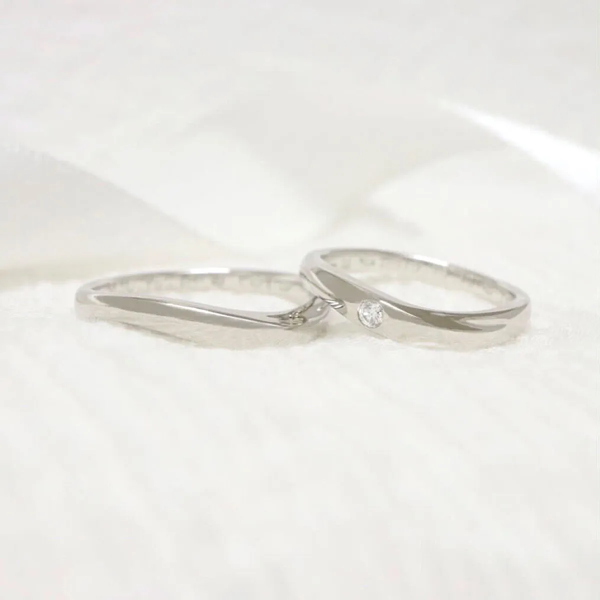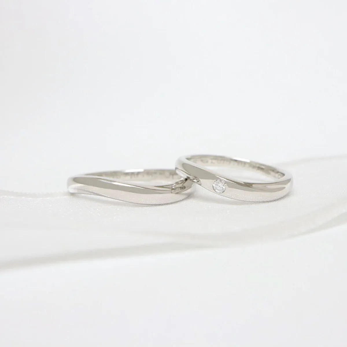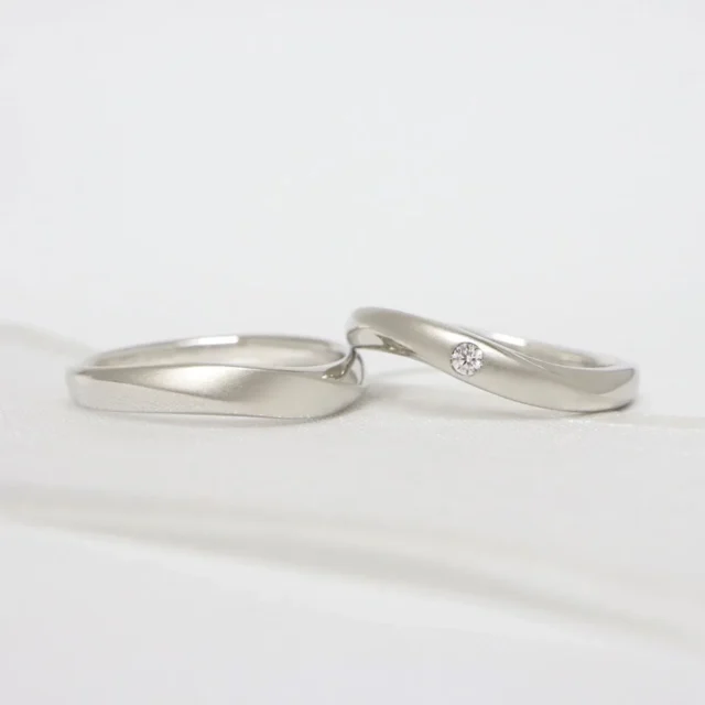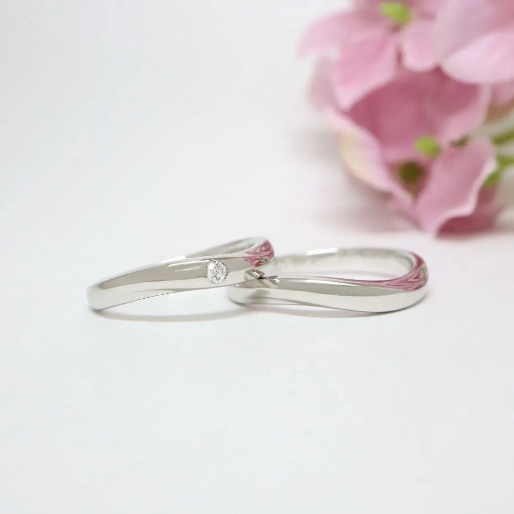 - 結婚指輪(上):ウェーブ、ワンメレ(ダイヤモンド1石)