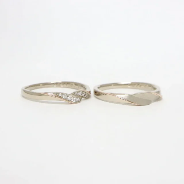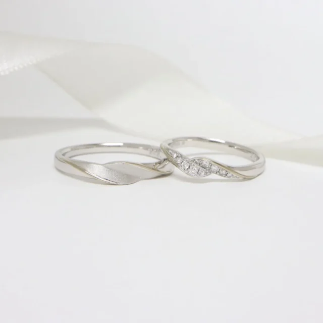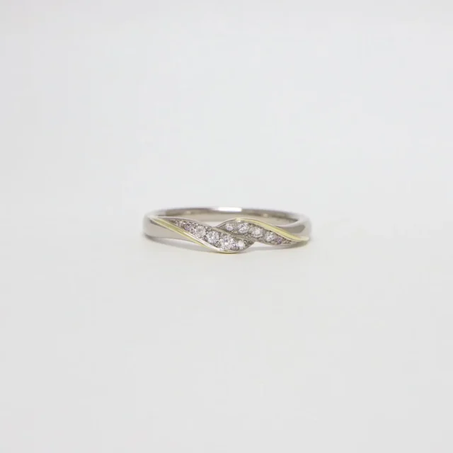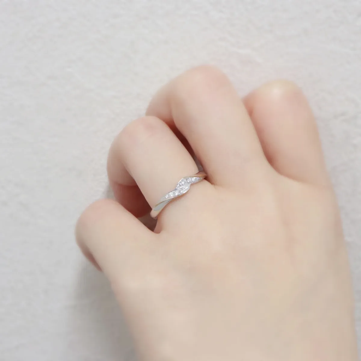 - 結婚指輪(上):ウェーブ、ラインメレ(ダイヤモンド華やか)