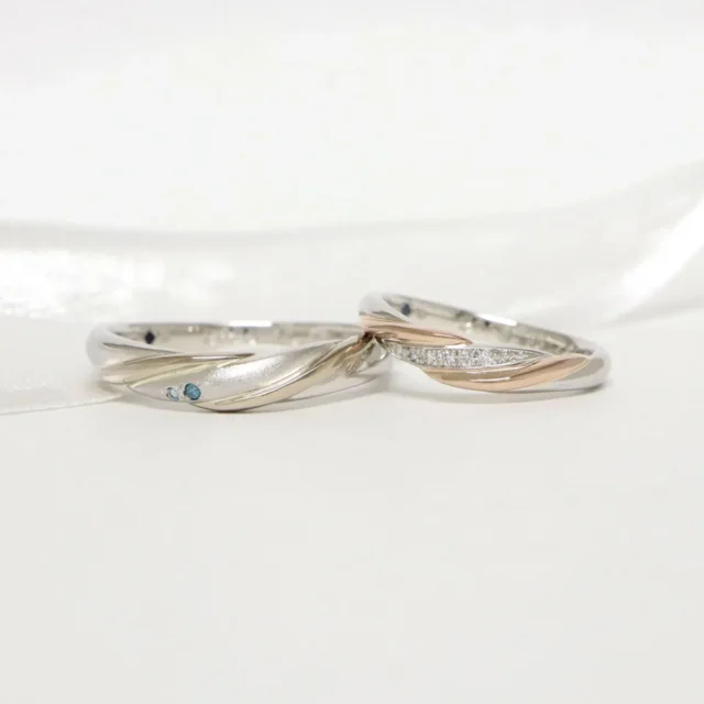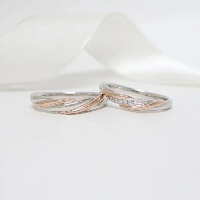 自由なアレンジができるLEGANの結婚指輪。LEGANは日本有数の老舗ブライダルジュエリー工房へ直接オーダーを行い、高品質なブライダルリングを適正価格でご提供しています。デザインは数百を超える豊富なラインナップをご用意し、コンシェルジュと相談をしながら高い技術を有するアトリエだからこそ実現できる様々なアレンジで、おふたりの理想のリングをご提供しております。