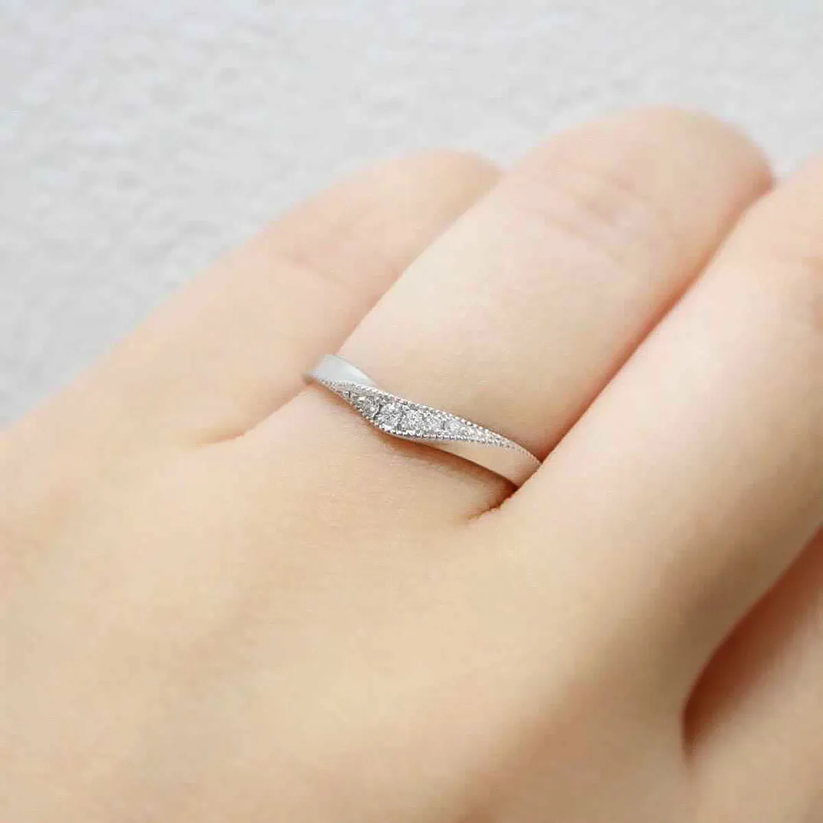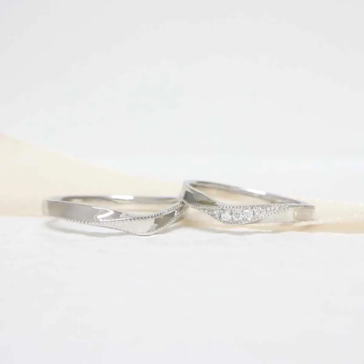 指なじみの良いV字ラインにミルグレインを施し、クラシカルでアンティークな印象に。
