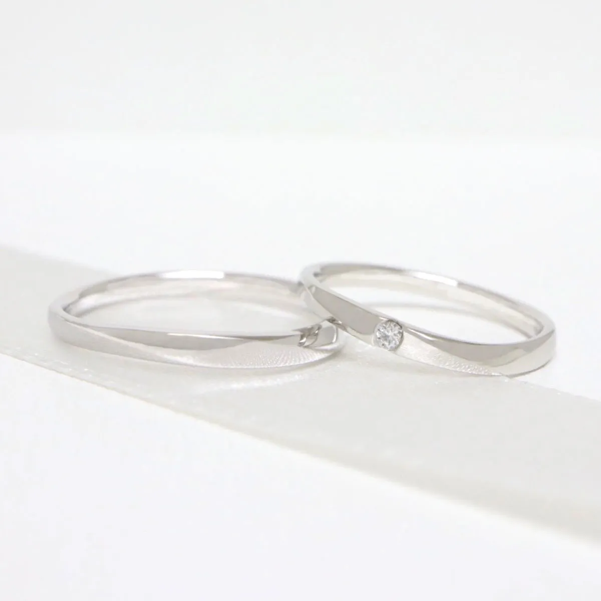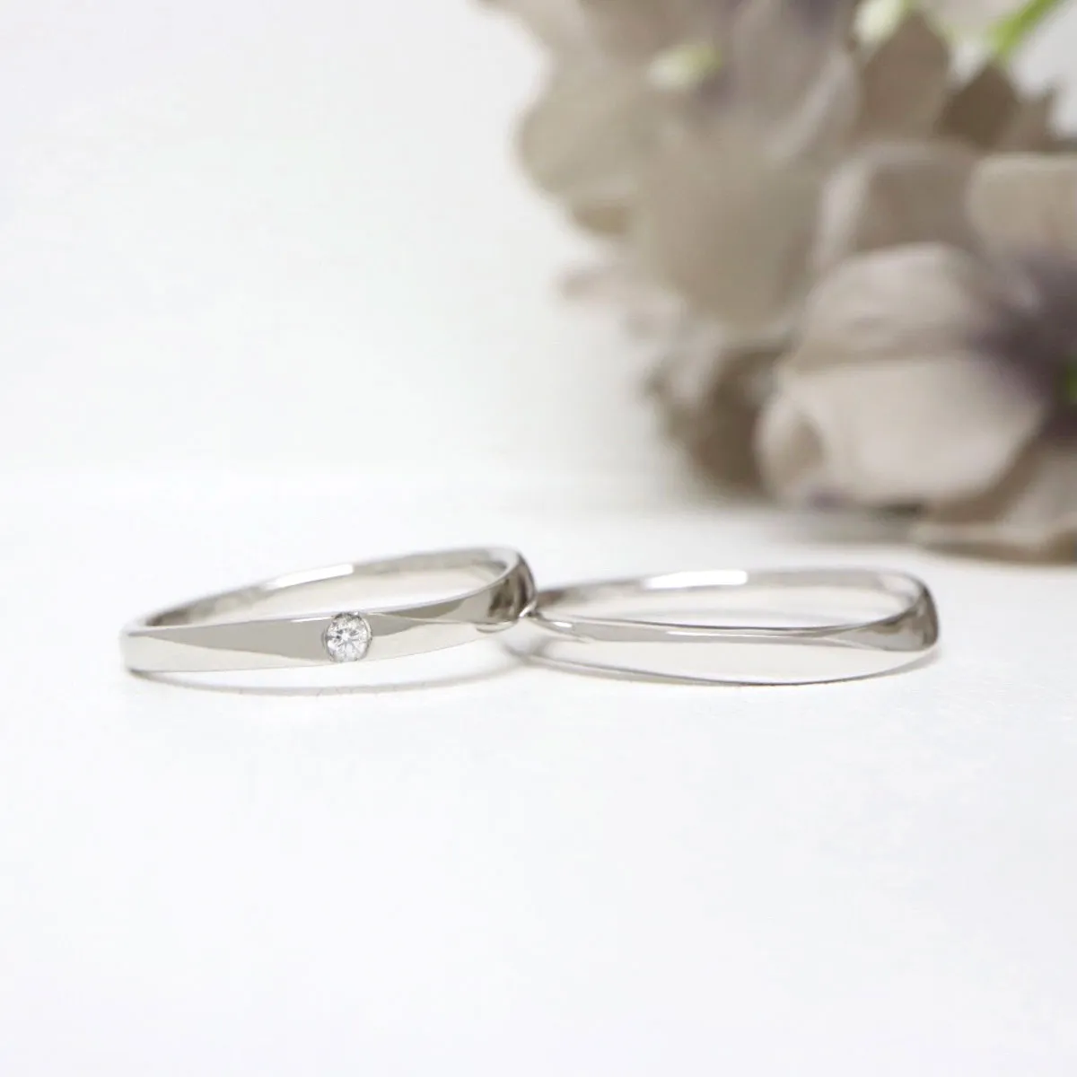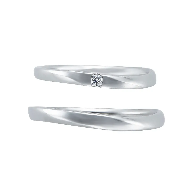 - 結婚指輪(上):ウェーブ、ワンメレ(ダイヤモンド1石)