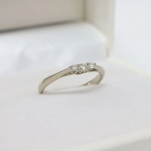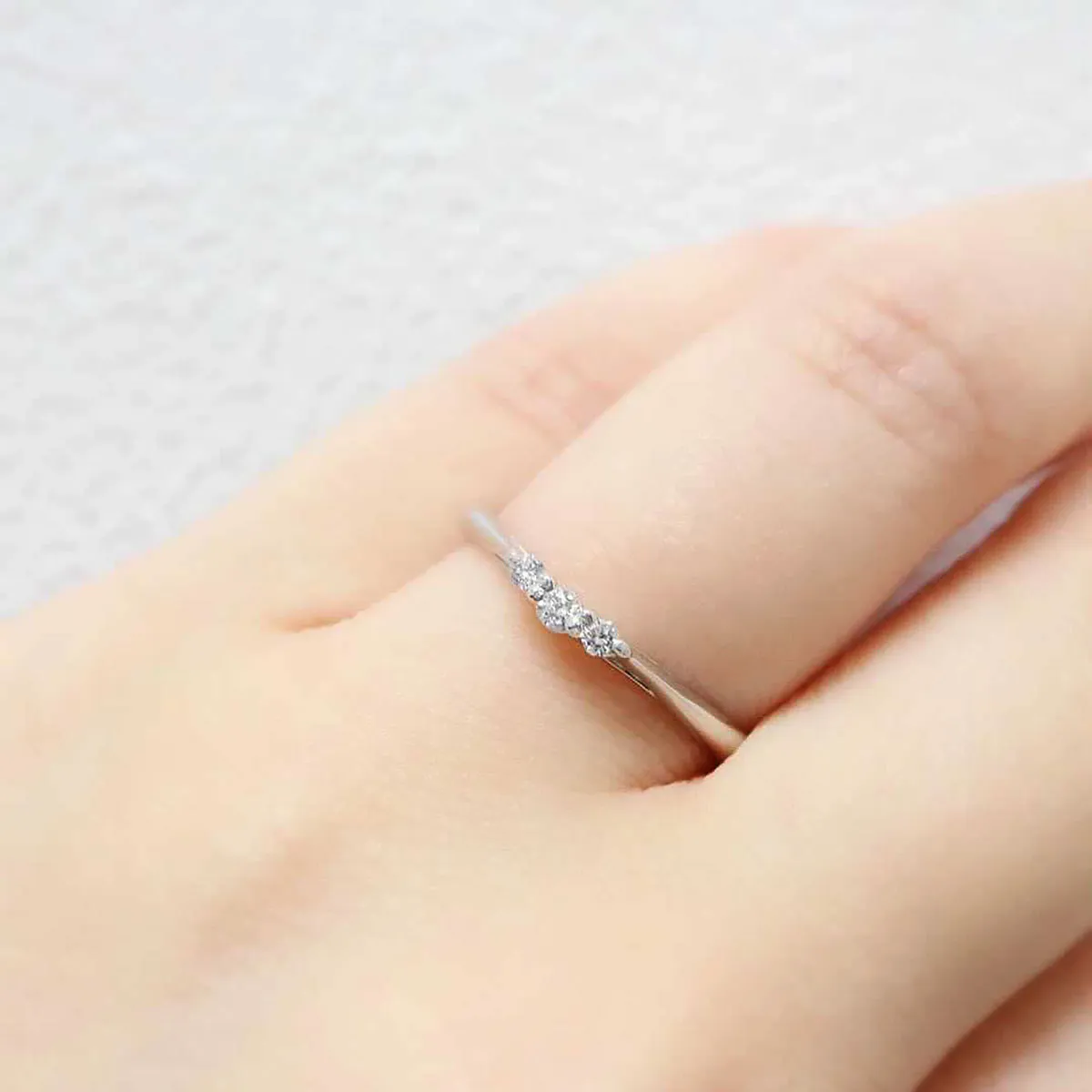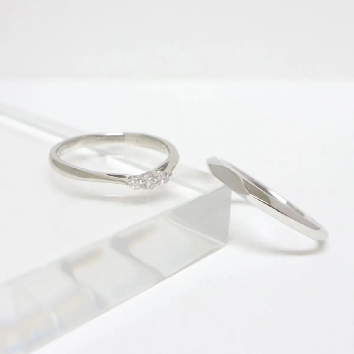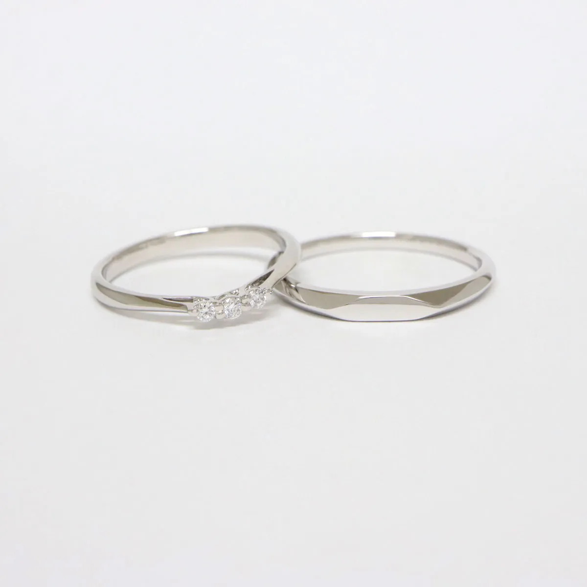 ダイヤモンドがより輝くように留め方にこだわった結婚指輪。いつまでもふたりを見守るかのように華やかに輝き続けます。 身につける度に愛情が増していくデザイン。