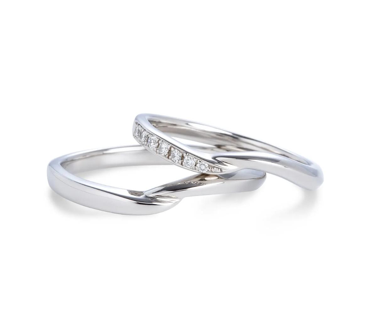 - 結婚指輪(上):ウェーブ、S字、ラインメレ(ダイヤモンド華やか)