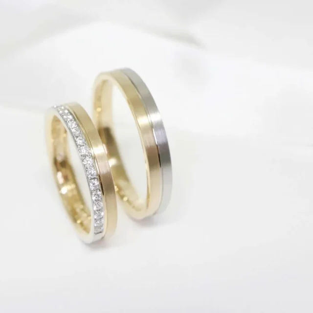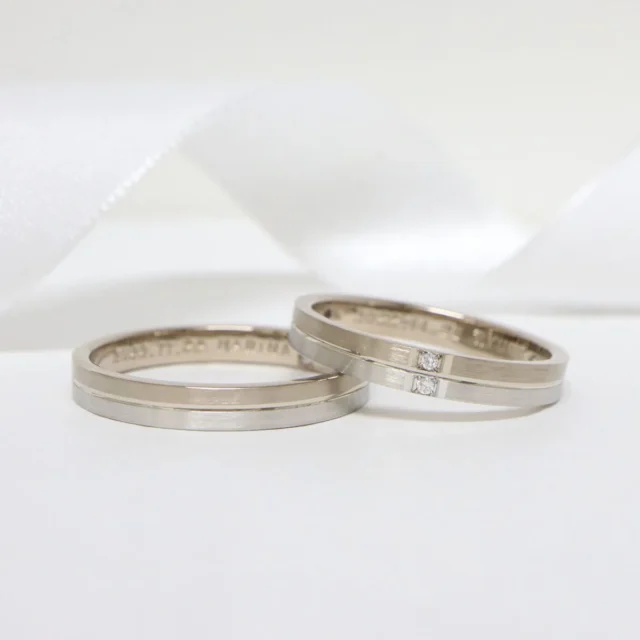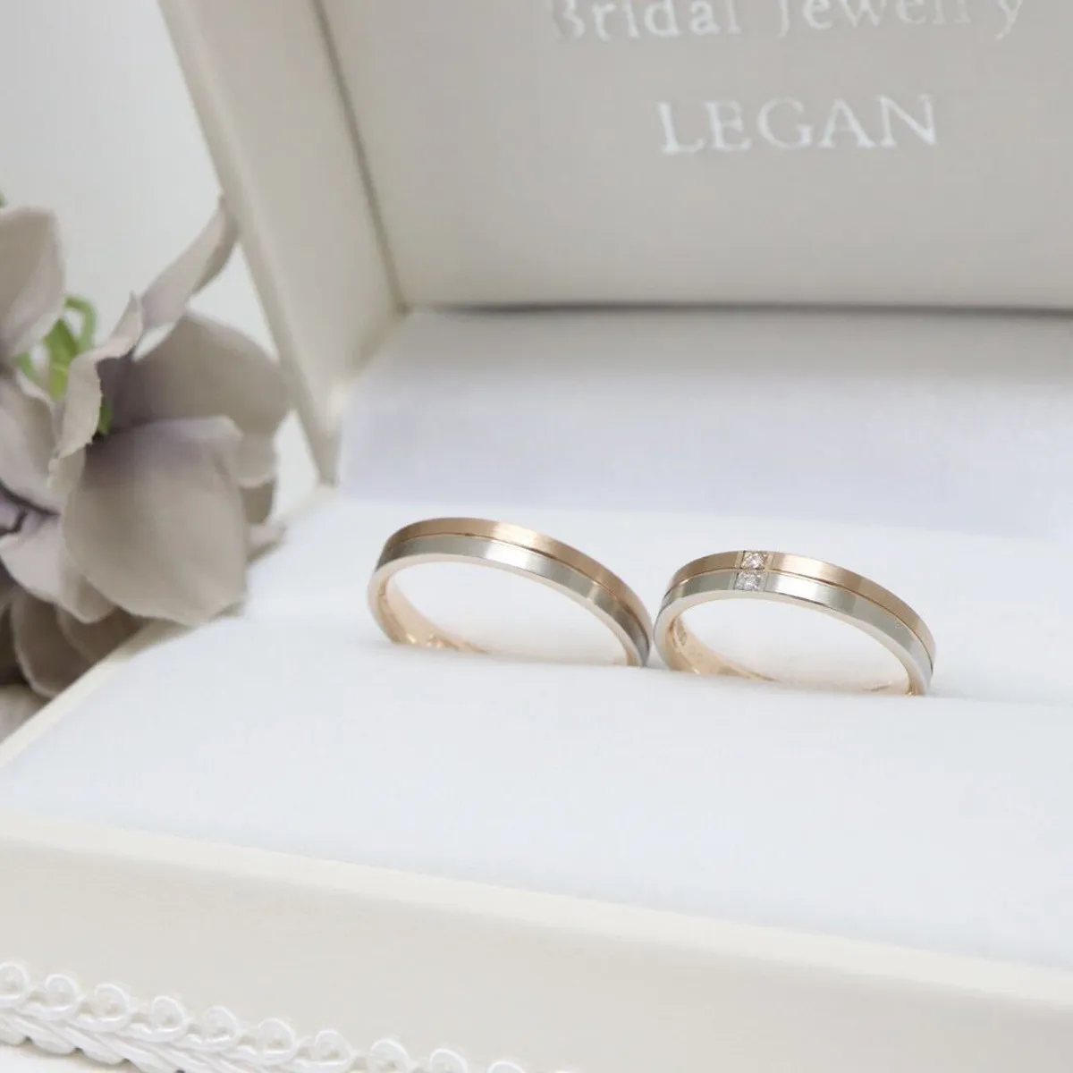 自由なアレンジができるLEGANの結婚指輪。LEGANは日本有数の老舗ブライダルジュエリー工房へ直接オーダーを行い、高品質なブライダルリングを適正価格でご提供しています。デザインは数百を超える豊富なラインナップをご用意し、コンシェルジュと相談をしながら高い技術を有するアトリエだからこそ実現できる様々なアレンジで、おふたりの理想のリングをご提供しております。