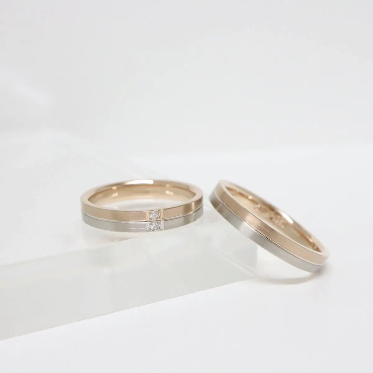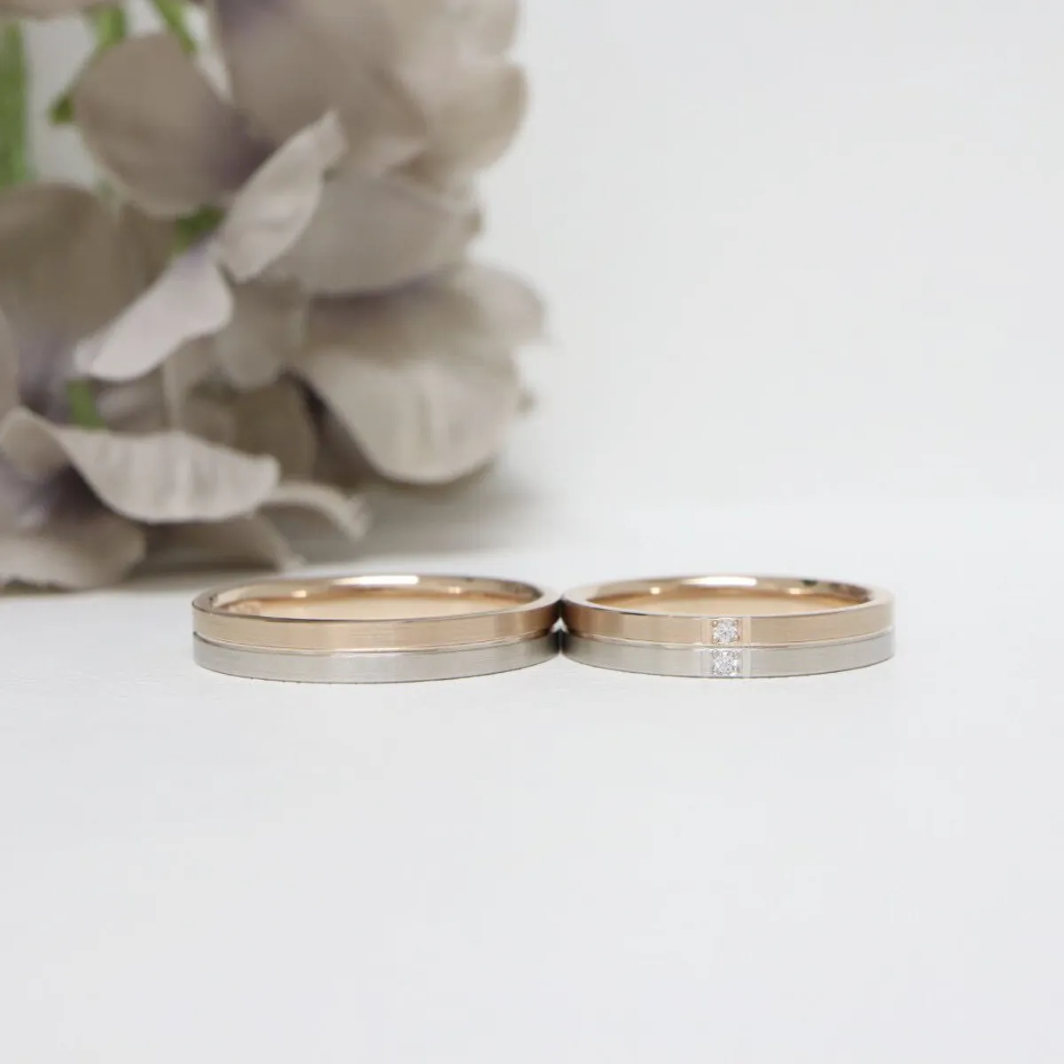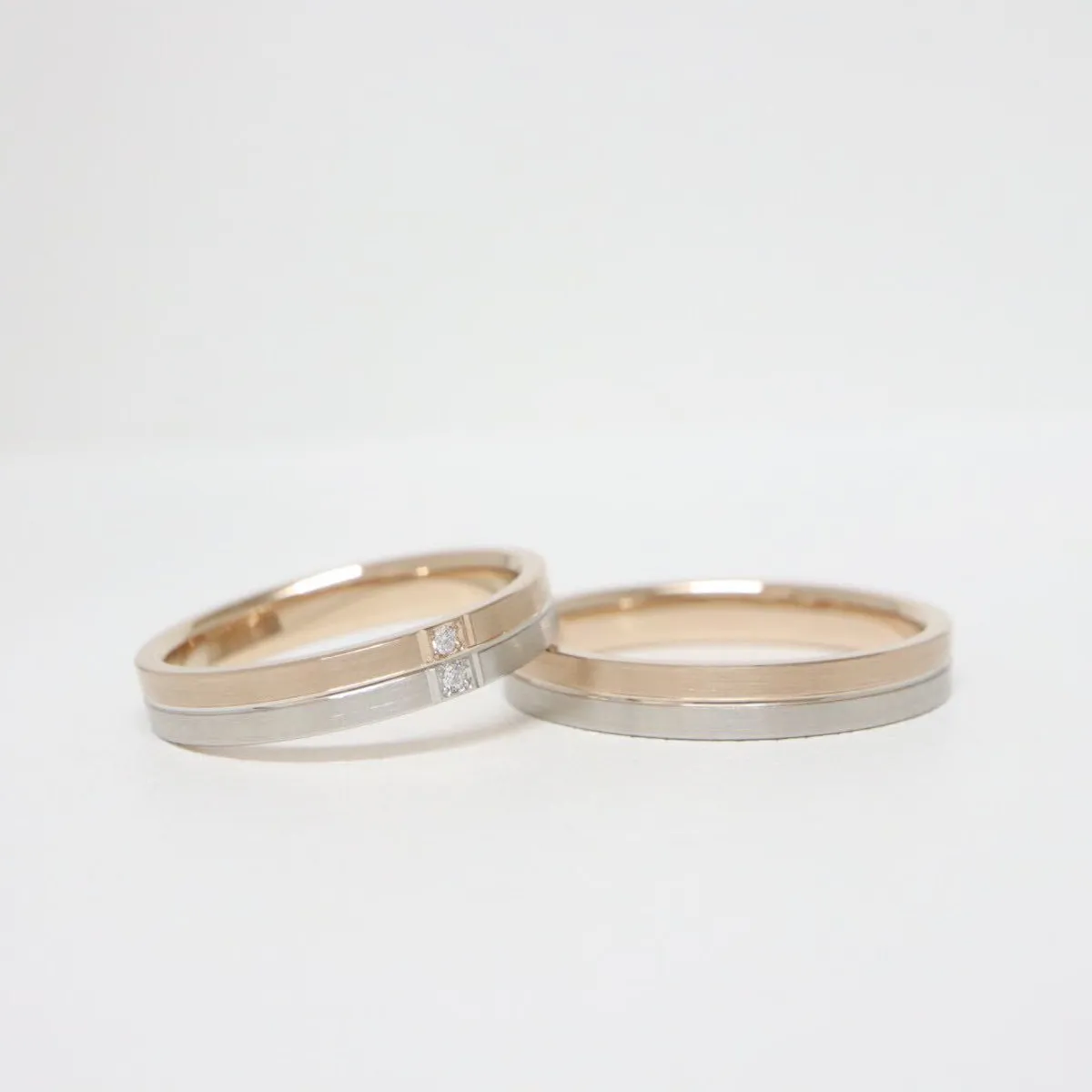 プラチナとピンクゴールドが織りなすコンビネーションリングは優しい夕暮れを表現。幸せな想いが心を満たしていくような温かい気持ちをいつまでも。