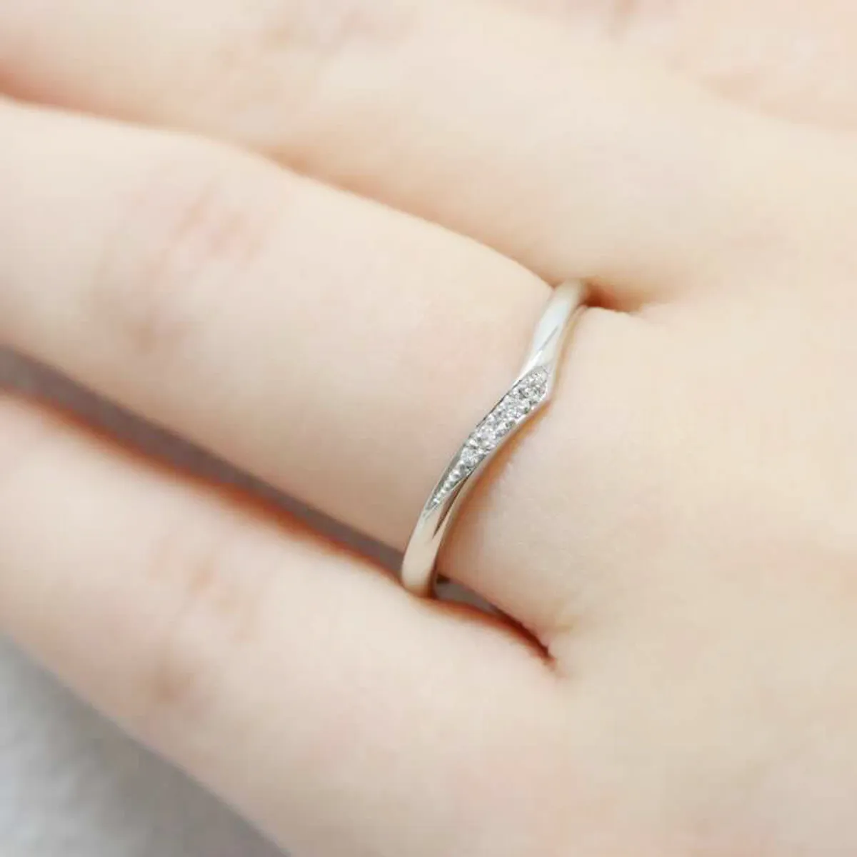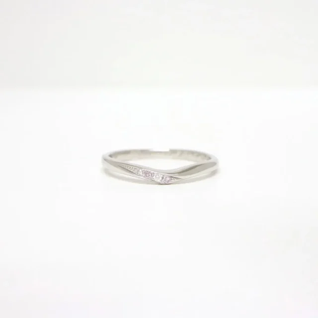 スペイン語で「微笑み」を意味するソンリッサ。 V字ラインで少しシャープなシルエットのマリッジリング。エンゲージと重ねた時も甘さを抑えて日常使いにも馴染みます。