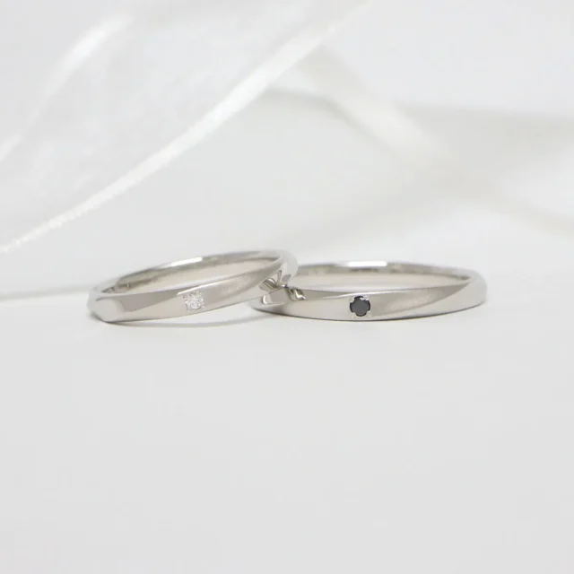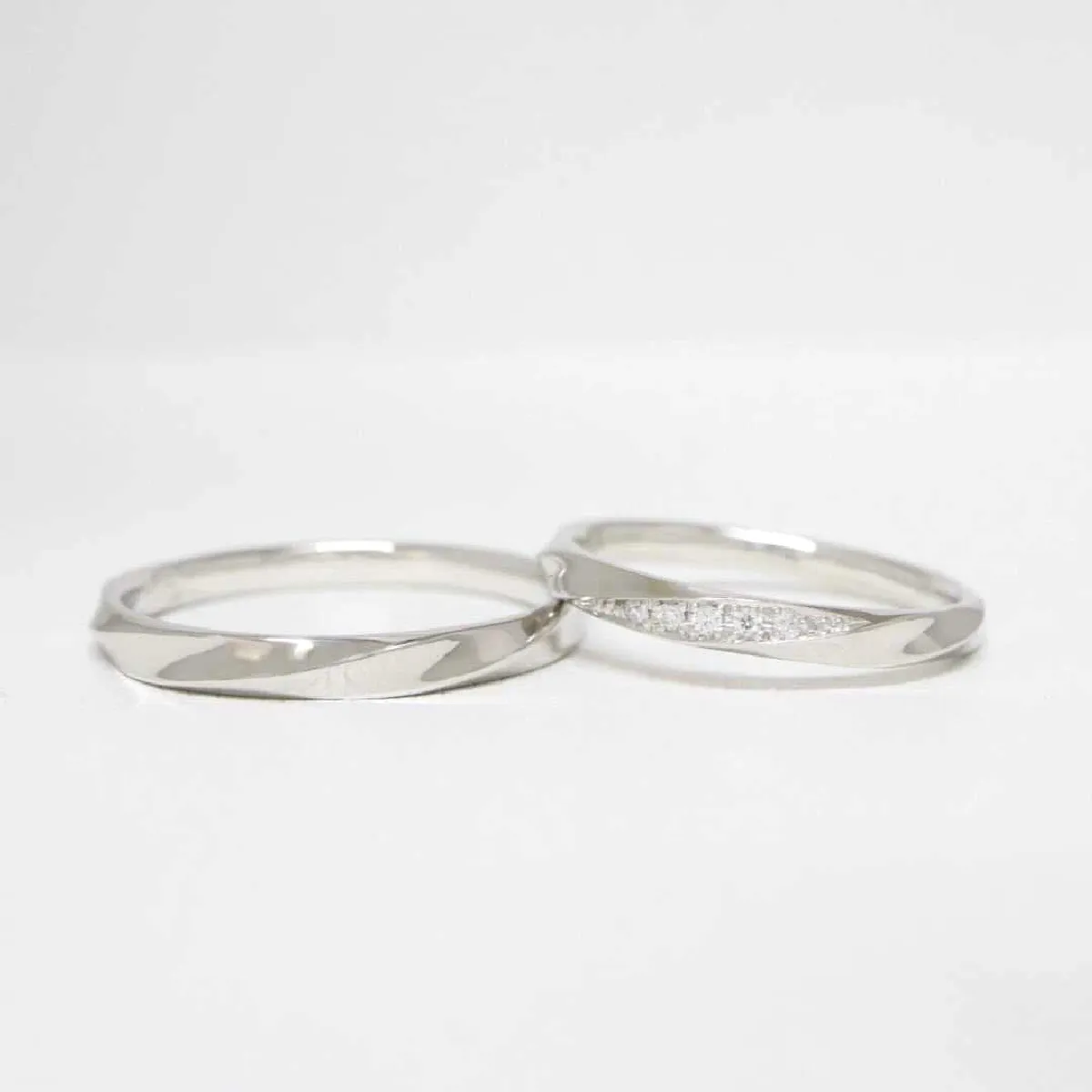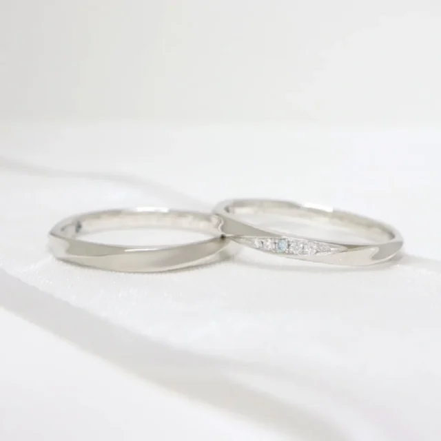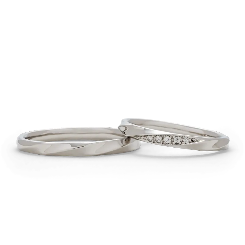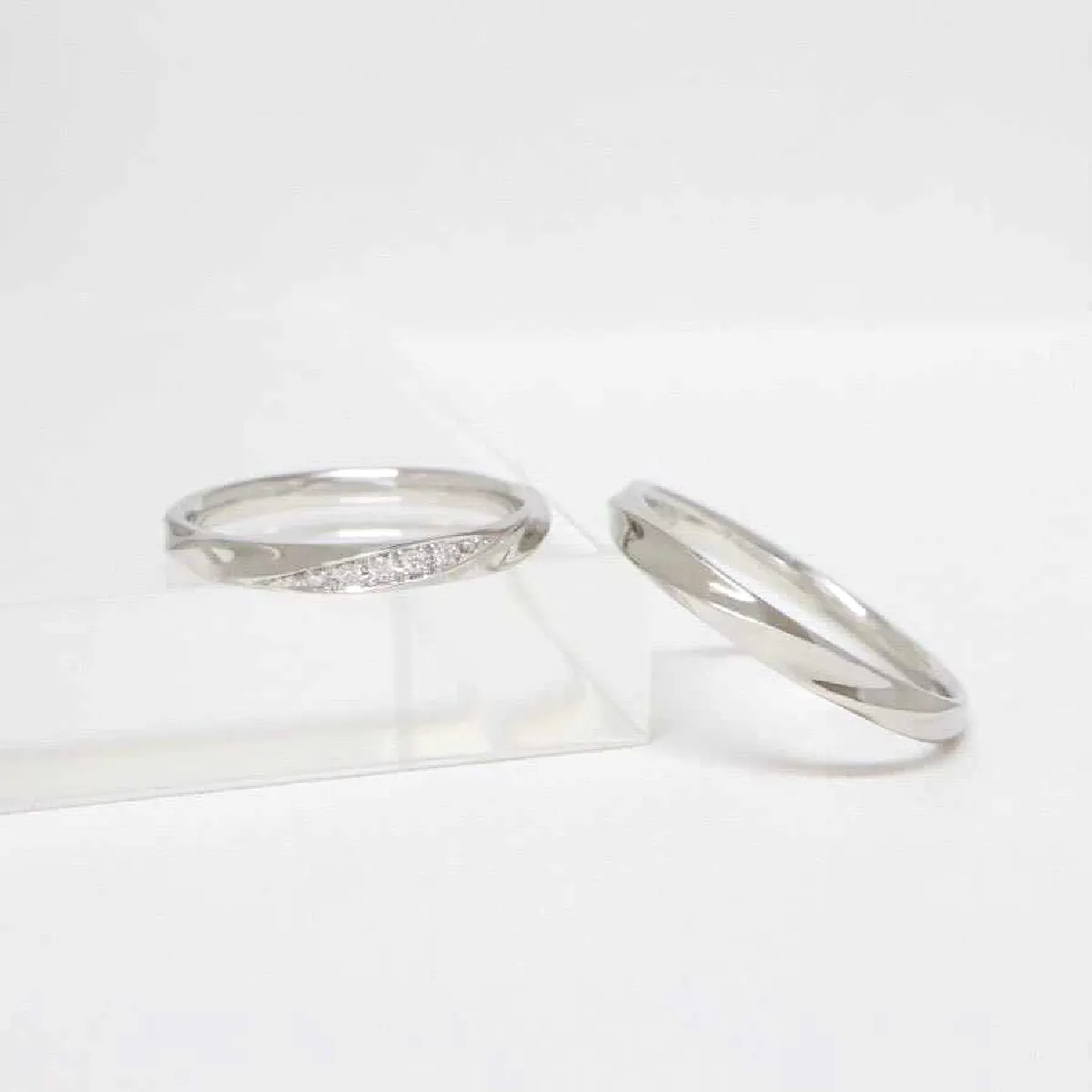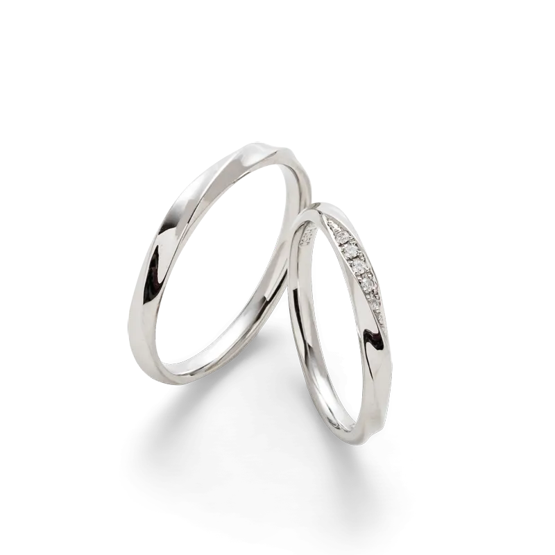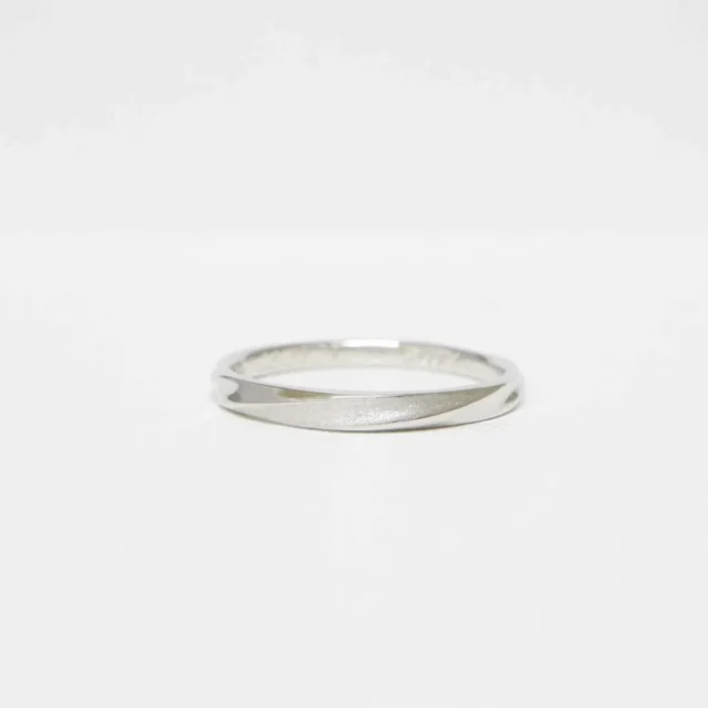 捻りのあるエッジの効いたデザインは天の川の流れをイメージしました。リングのアウトラインは直線なので手元をすっきりとした印象に。