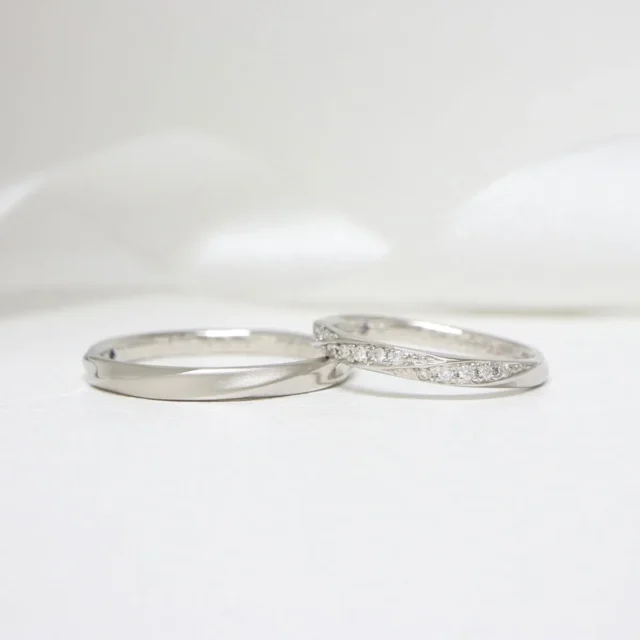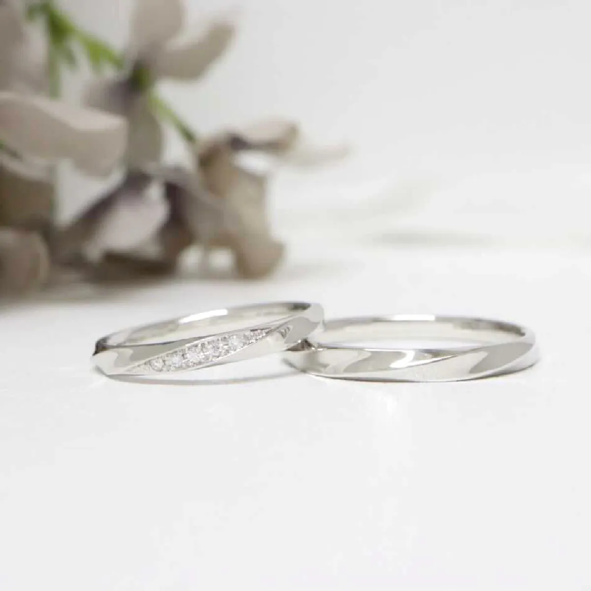 自由なアレンジができるLEGANの結婚指輪。LEGANは日本有数の老舗ブライダルジュエリー工房へ直接オーダーを行い、高品質なブライダルリングを適正価格でご提供しています。デザインは数百を超える豊富なラインナップをご用意し、コンシェルジュと相談をしながら高い技術を有するアトリエだからこそ実現できる様々なアレンジで、おふたりの理想のリングをご提供しております。