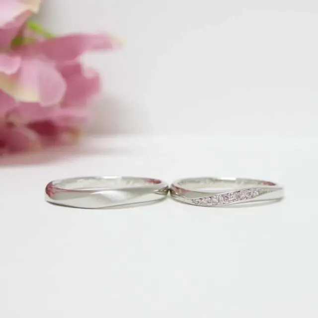 - 結婚指輪(上):ウェーブ、ラインメレ(ダイヤモンド華やか)