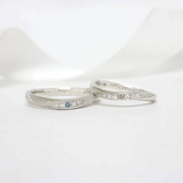 - 結婚指輪(上):ウェーブ、S字、ラインメレ(ダイヤモンド華やか)