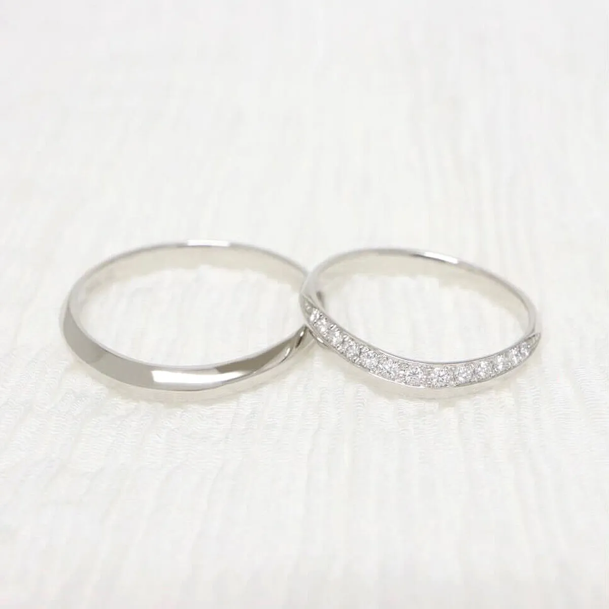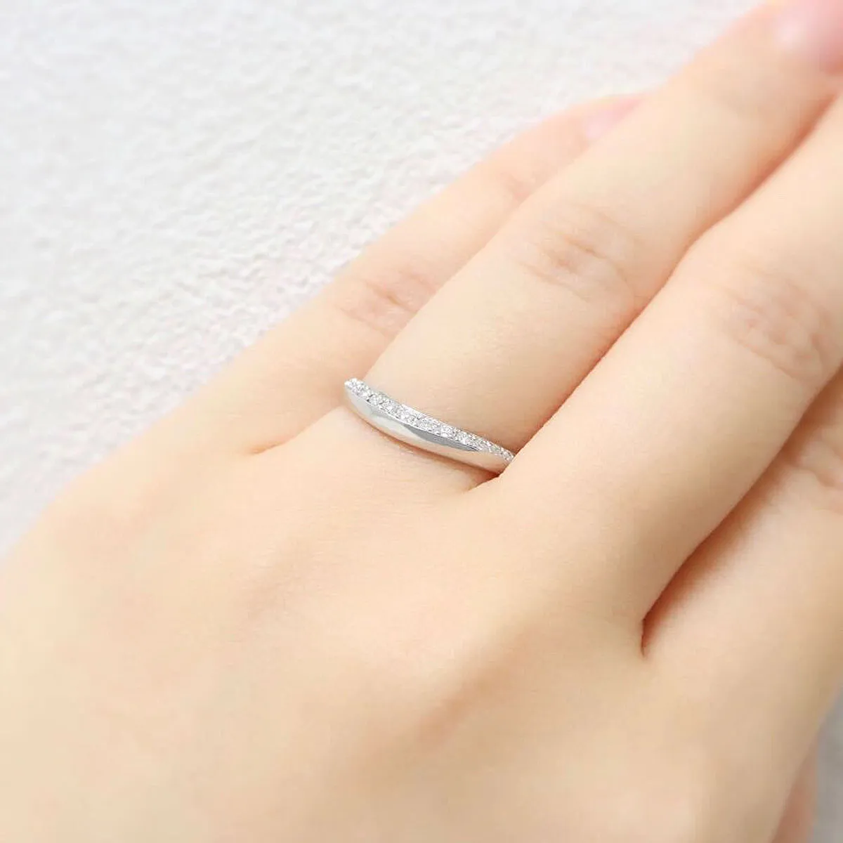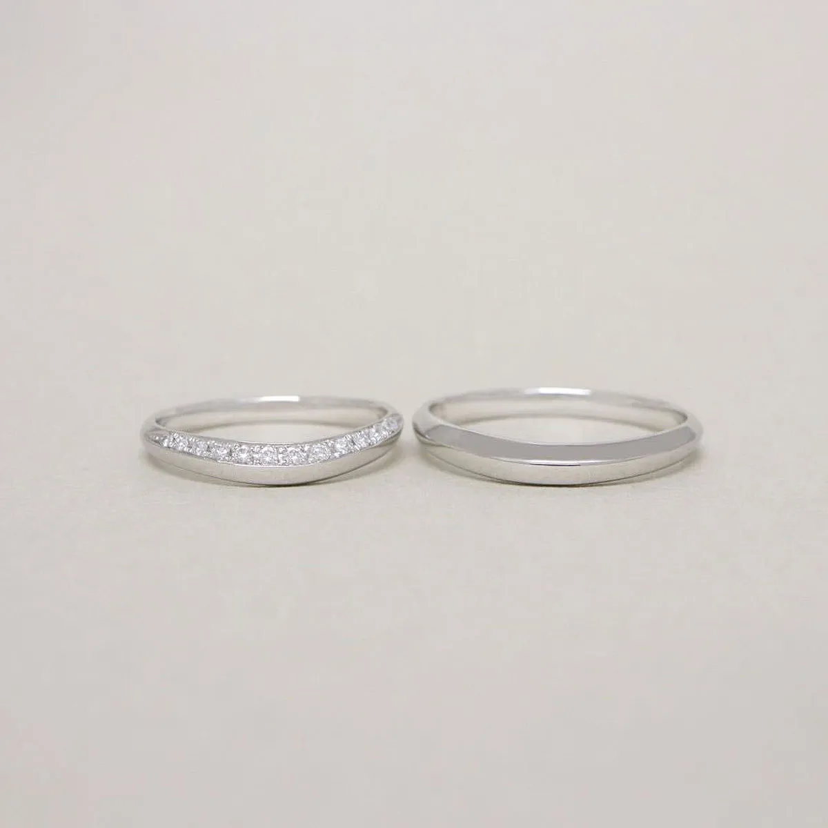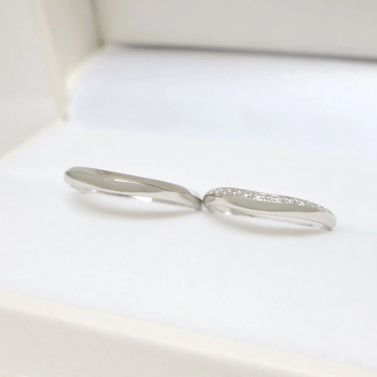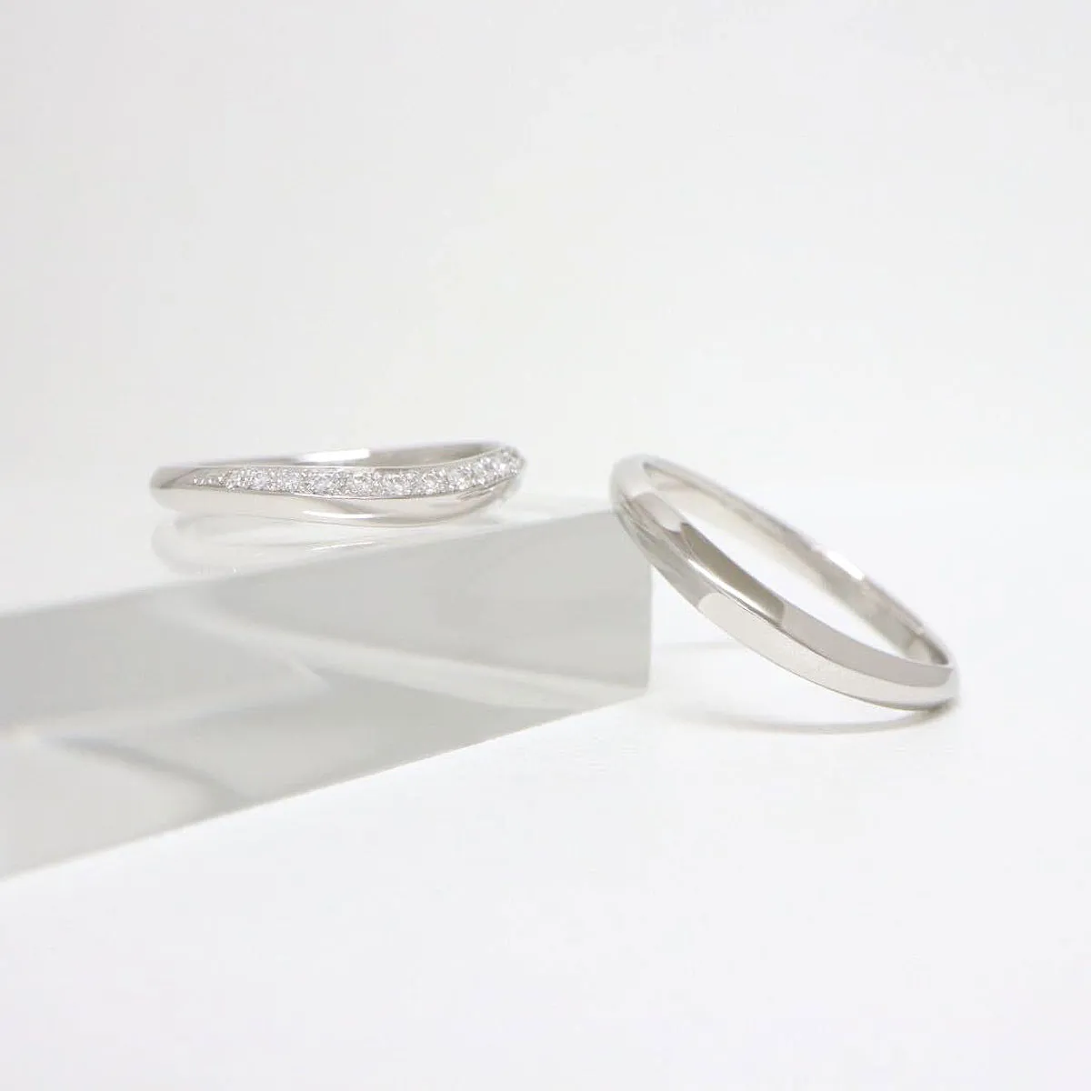 緩やかなカーブを描く立体感のある結婚指輪。メレダイヤモンドは海辺の寄せては返す波のようにキラキラと輝き続けます。