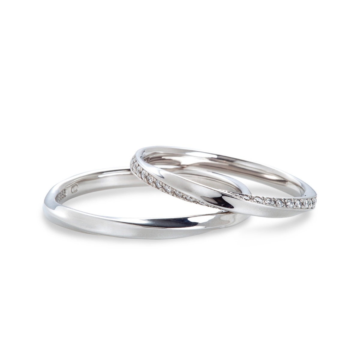 - 結婚指輪(上):ウェーブ、ラインメレ(ダイヤモンド華やか)