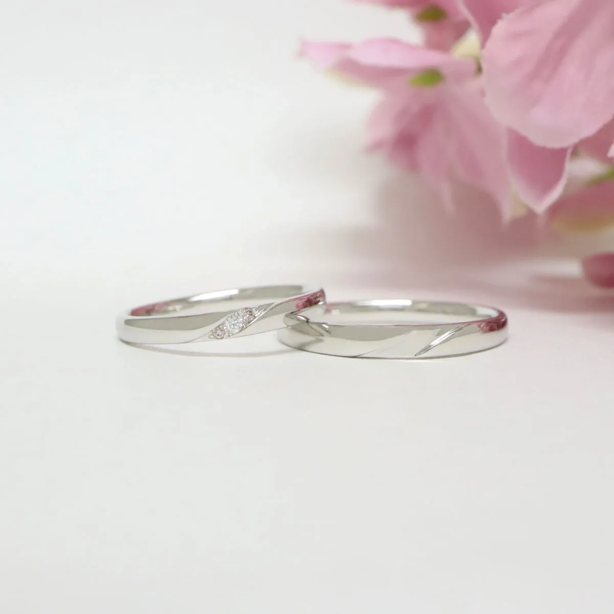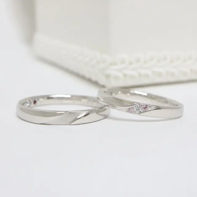 - 結婚指輪(上):0.02ct(ツインズキューピッド、ピンクダイヤモンド)