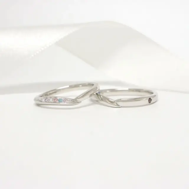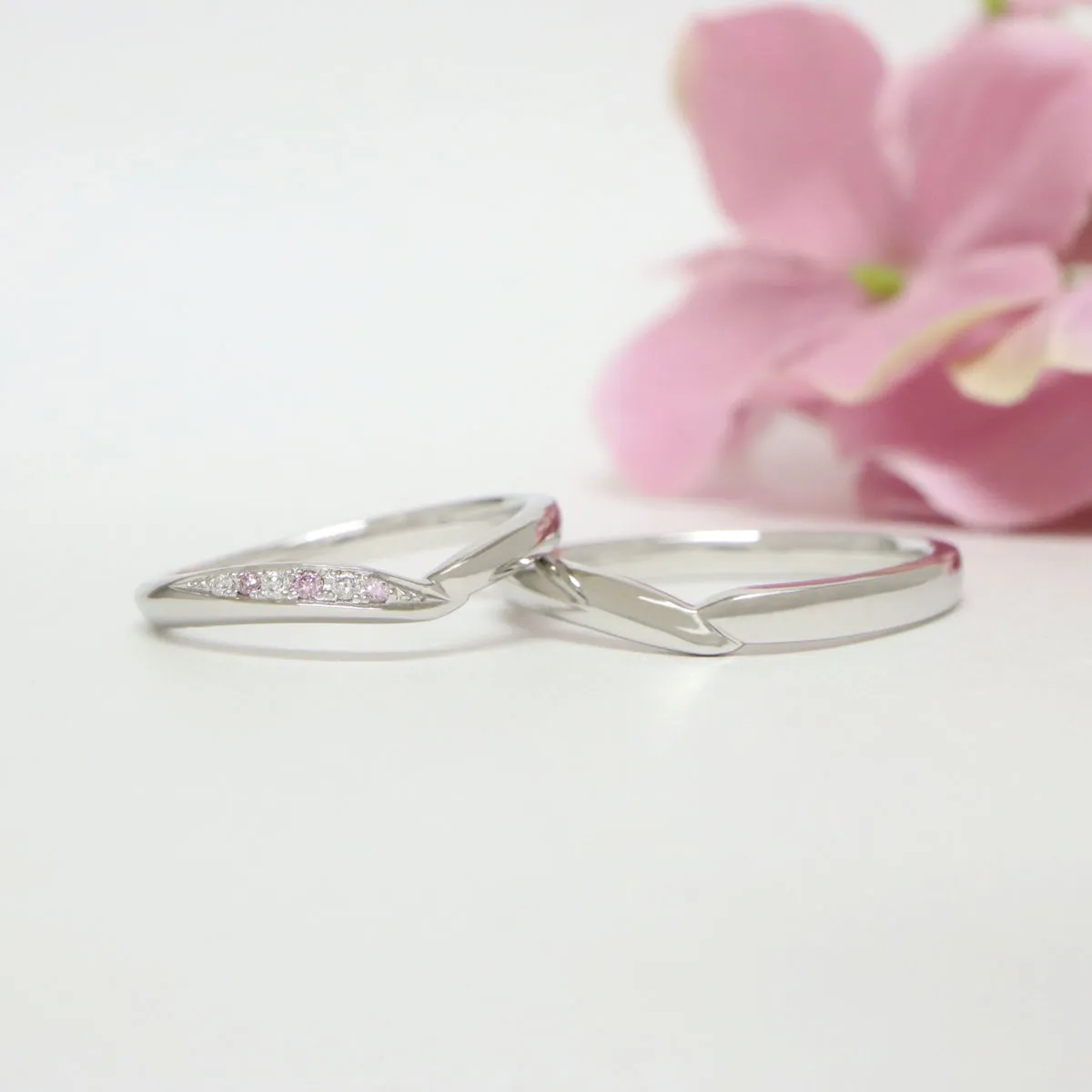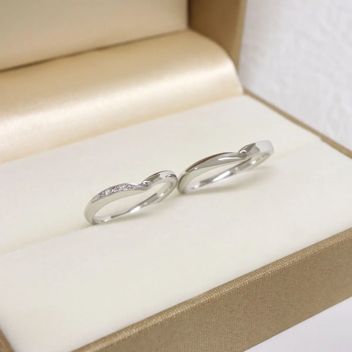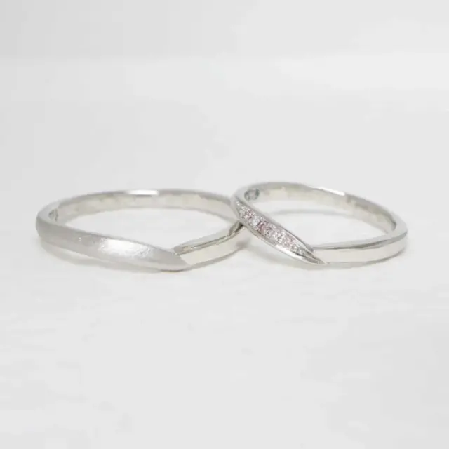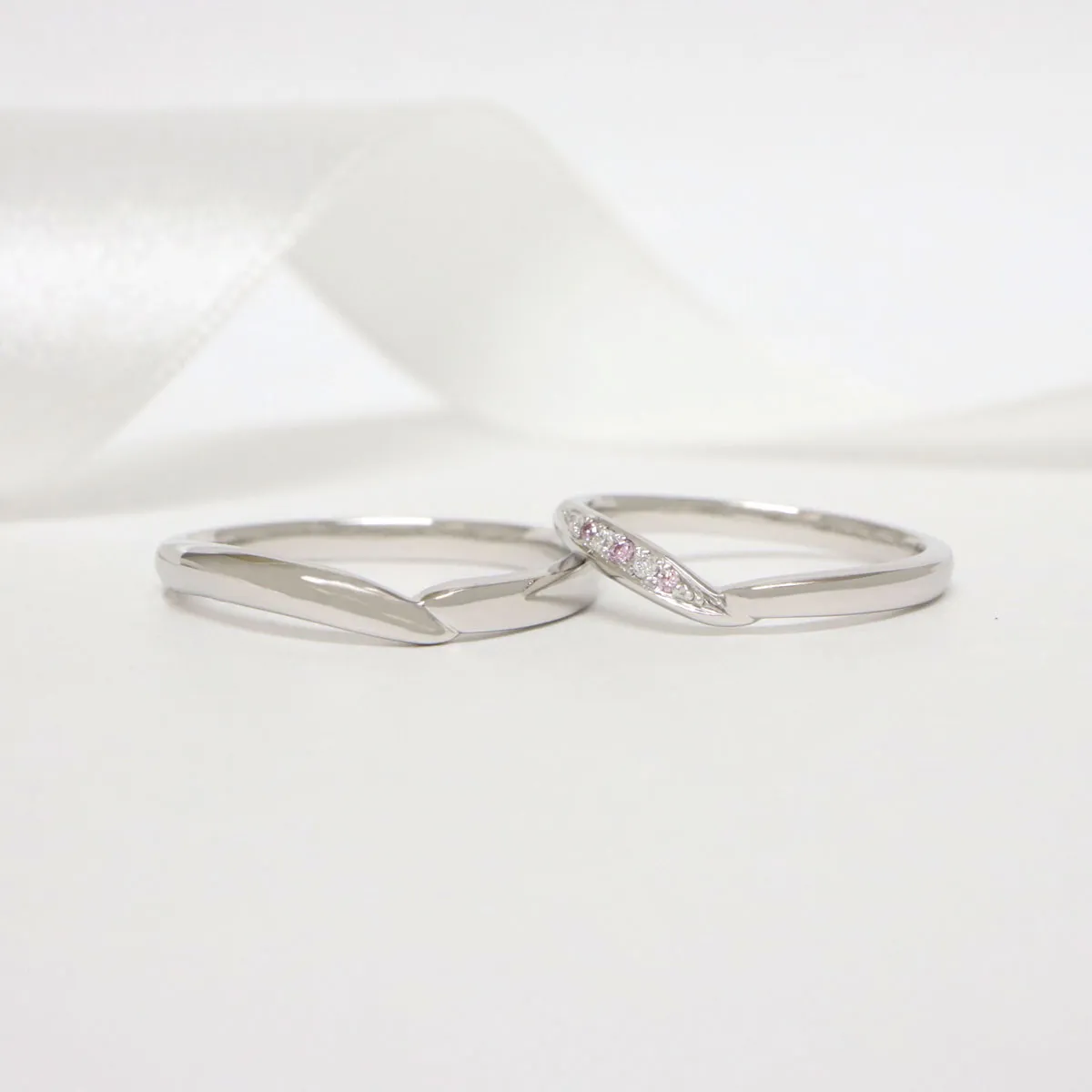 - 結婚指輪(上):V字、ラインメレ(ダイヤモンド華やか)