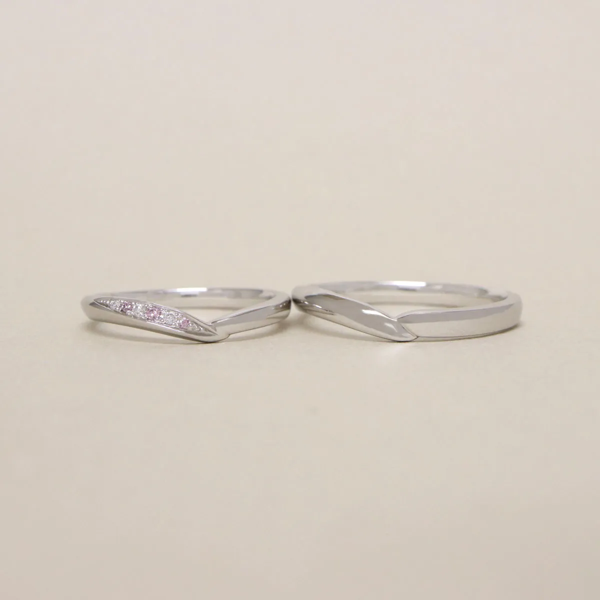 1つの原石から生まれた2粒のダイヤが結ぶ、永遠の絆「ツインズキューピッド」をリングの内側へセッティング。ゆるやかなV字のカーブが華奢ですっきりとした印象。指を綺麗に見せてくれるデザインです。