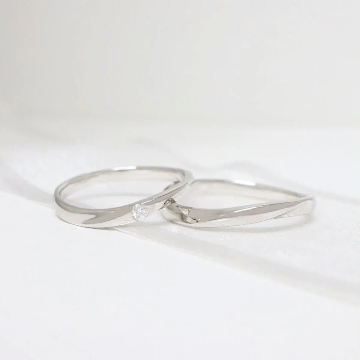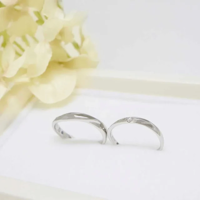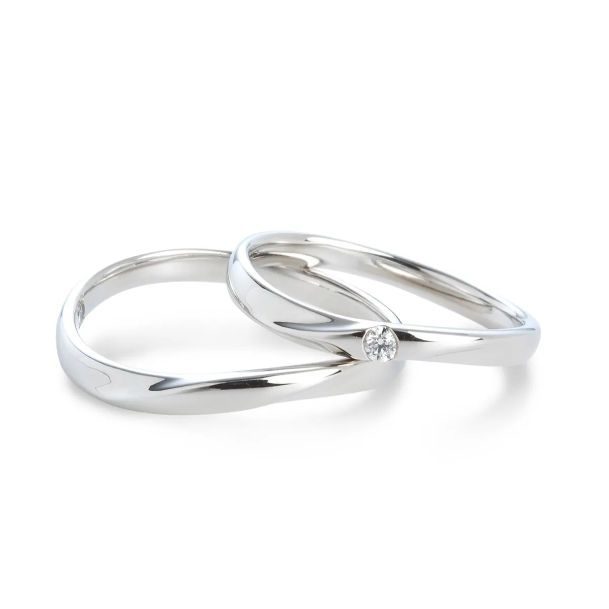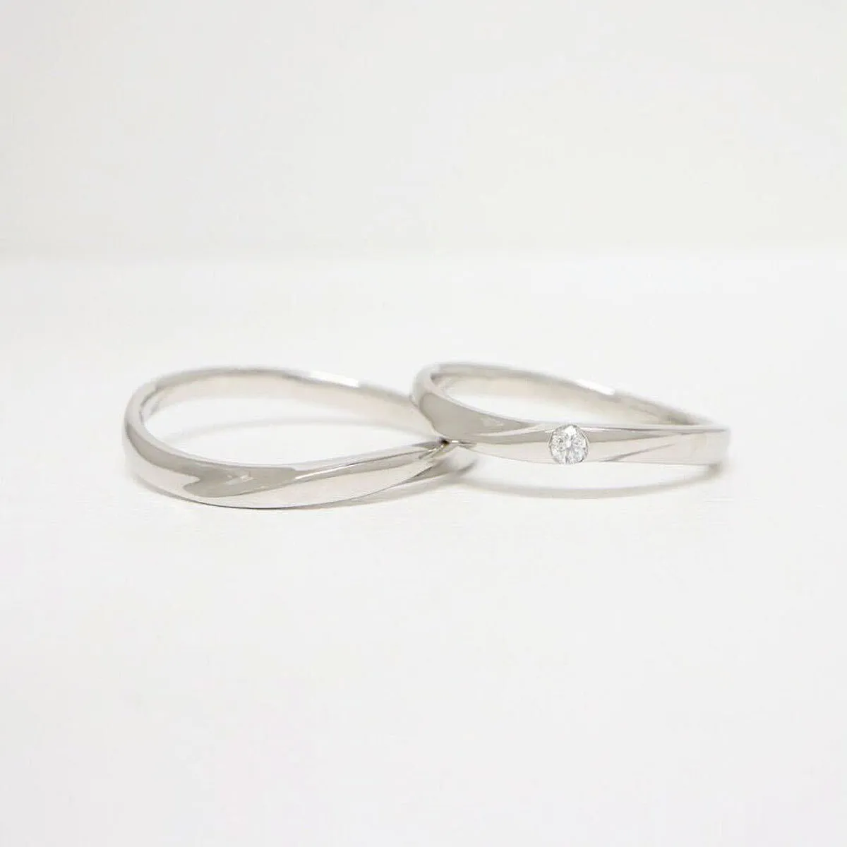 - 結婚指輪(上):ウェーブ、ワンメレ(ダイヤモンド1石)
