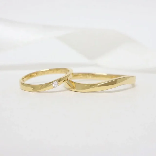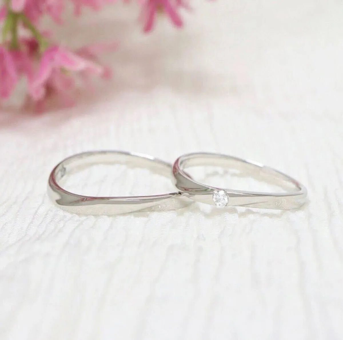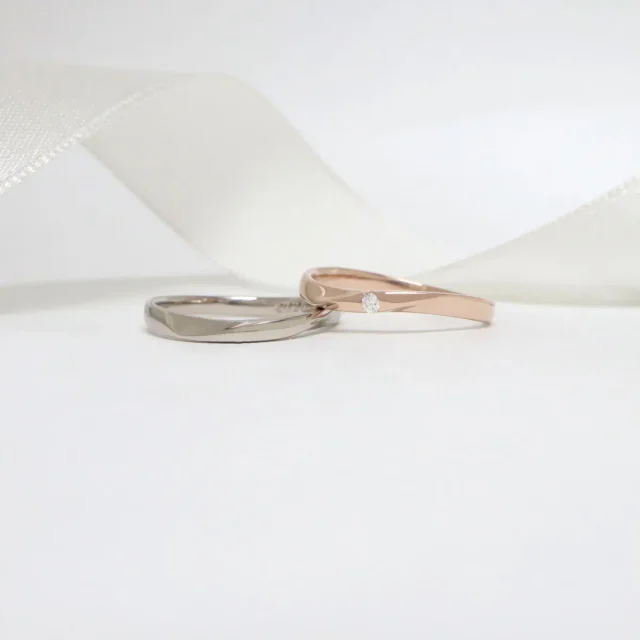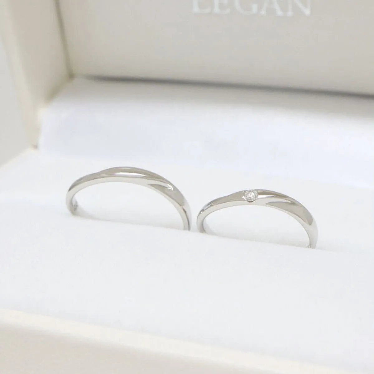 - 結婚指輪(上):ウェーブ、ワンメレ(ダイヤモンド1石)
