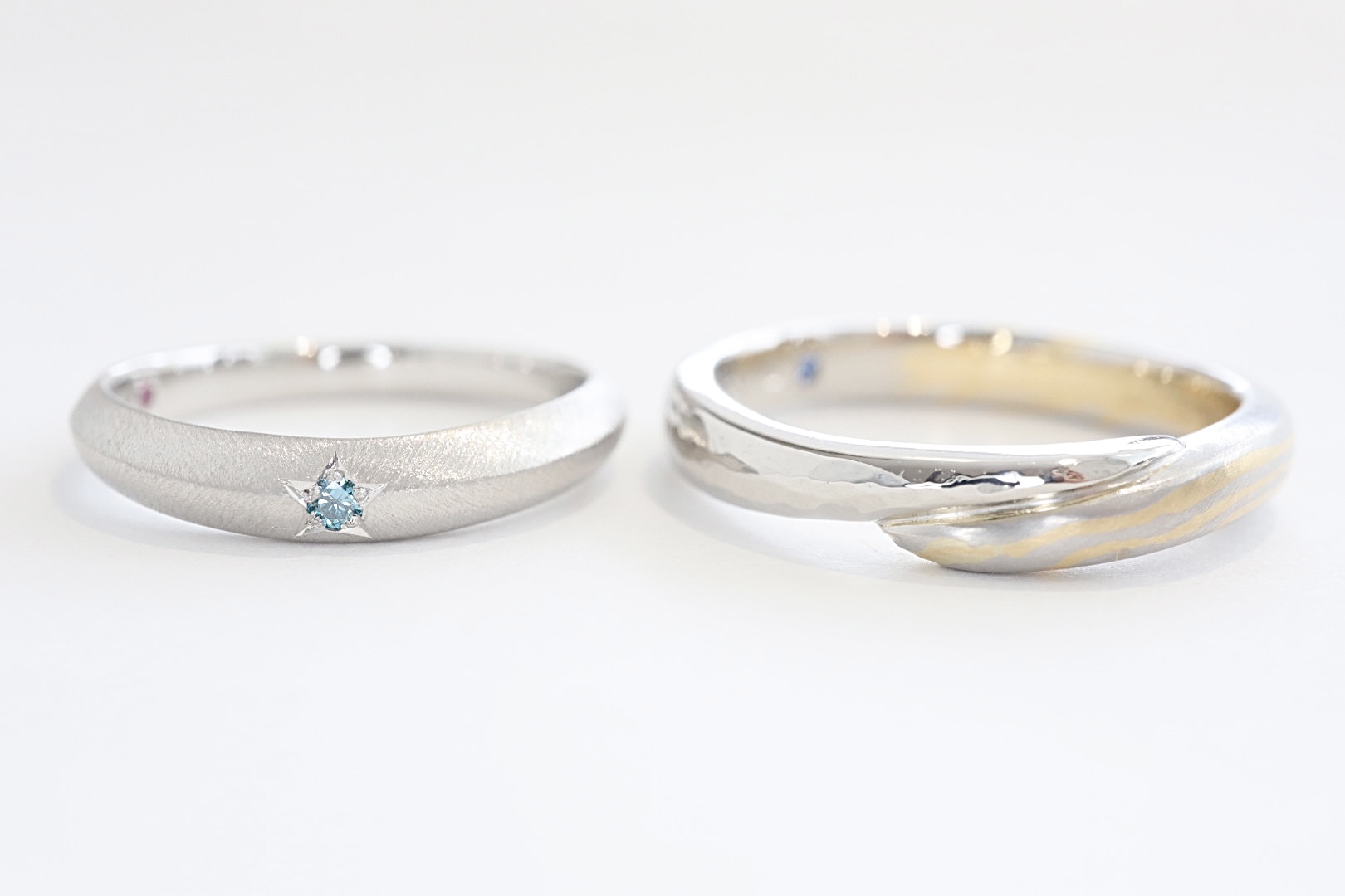 左サイドはプラチナ一色で、槌目仕上げ