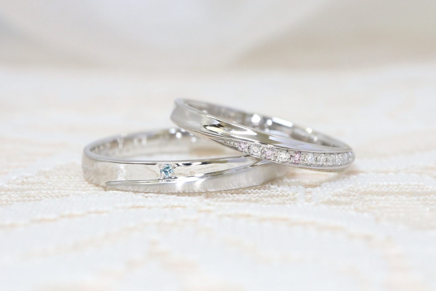 - 【ピンク、オーシャンプルーダイヤ、ヘアライン加工】